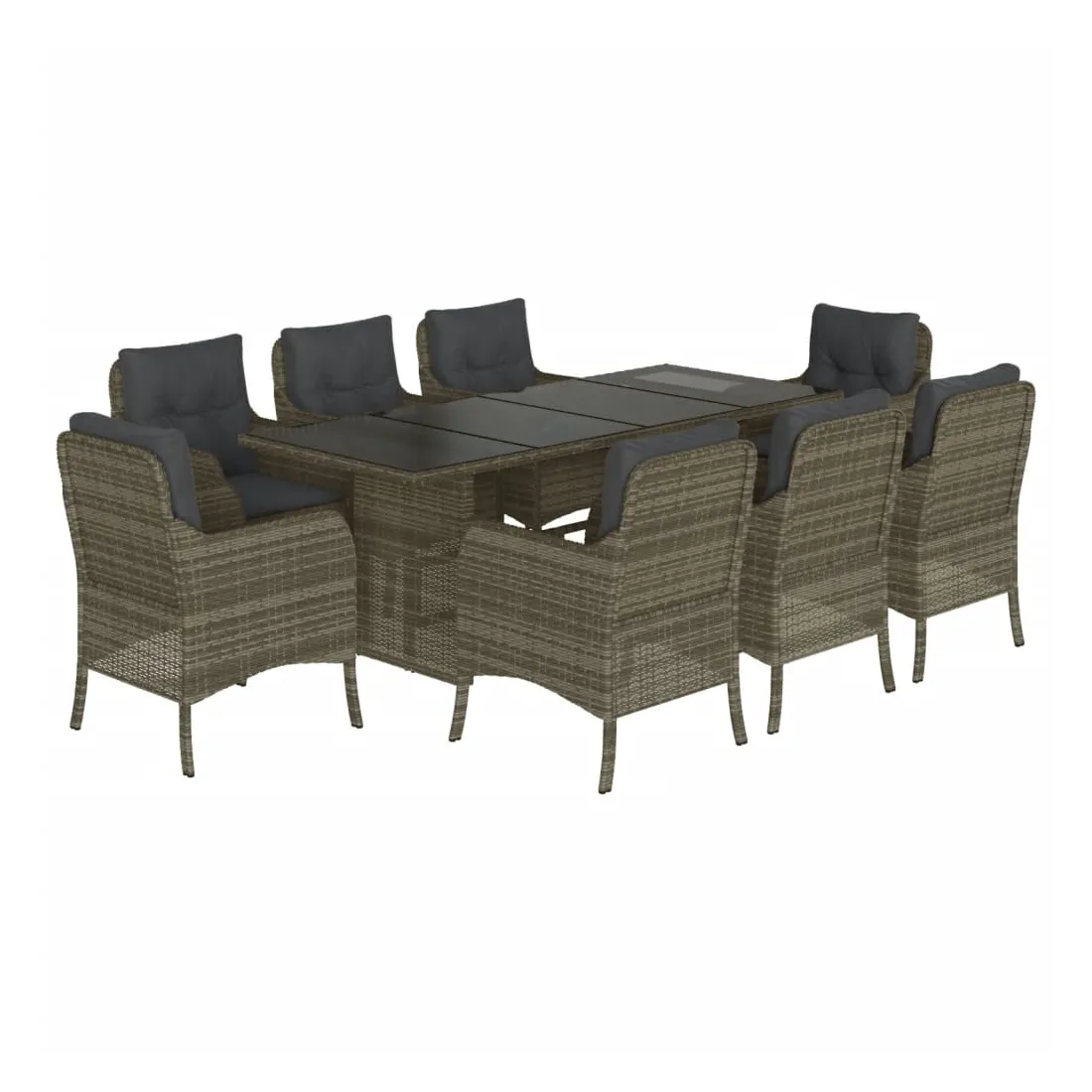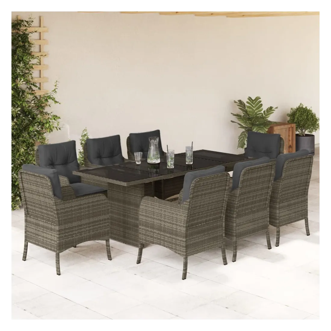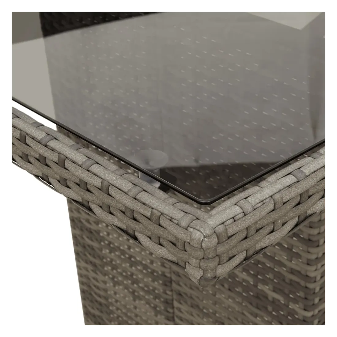 Cet ensemble de salle à manger de jardin est un excellent choix pour les repas en plein air ou pour vous détendre dans le jardin, dans l'arrière-cour ou sur la terrasse. Matériau durable : la résine tressée, également connue sous le nom de poly rotin, est un matériau synthétique solide et nécessitant peu d'entretien qui ressemble au rotin naturel. Il est léger, facile à nettoyer et couramment utilisé pour les meubles d'extérieur en raison de sa durabilité et de ses propriétés de résistance aux intempéries.Expérience d'assise confortable : ce mobilier d'extérieur, doté de coussins épais, offre une expérience d'assise confortable.Housse amovible et lavable : ces coussins de siège sont dotés de housses amovibles pour un lavage et un entretien faciles.Dessus en verre : le dessus de la table d'extérieur est fabriqué en verre trempé solide et durable, ce qui le rend facile à nettoyer avec un chiffon humide et ajoute une touche d'élégance à votre espace extérieur.Cadre robuste et stable : le cadre en acier enduit de poudre assure la solidité et la stabilité du meuble de jardin pour une utilisation quotidienne à l'extérieur. Bon à savoir :Pour que vos meubles d'extérieur restent beaux, nous vous recommandons de les protéger avec une housse imperméable.