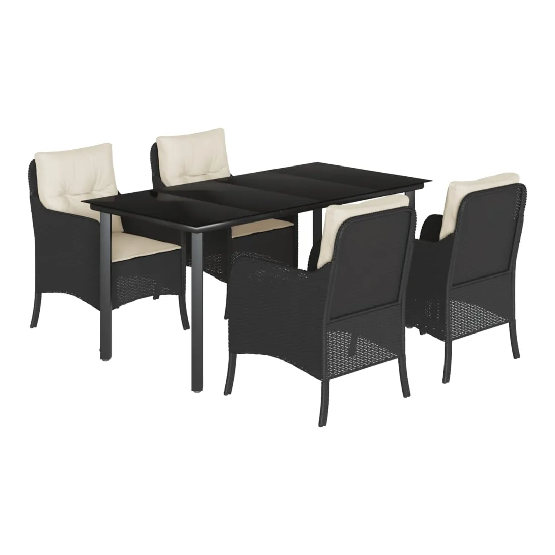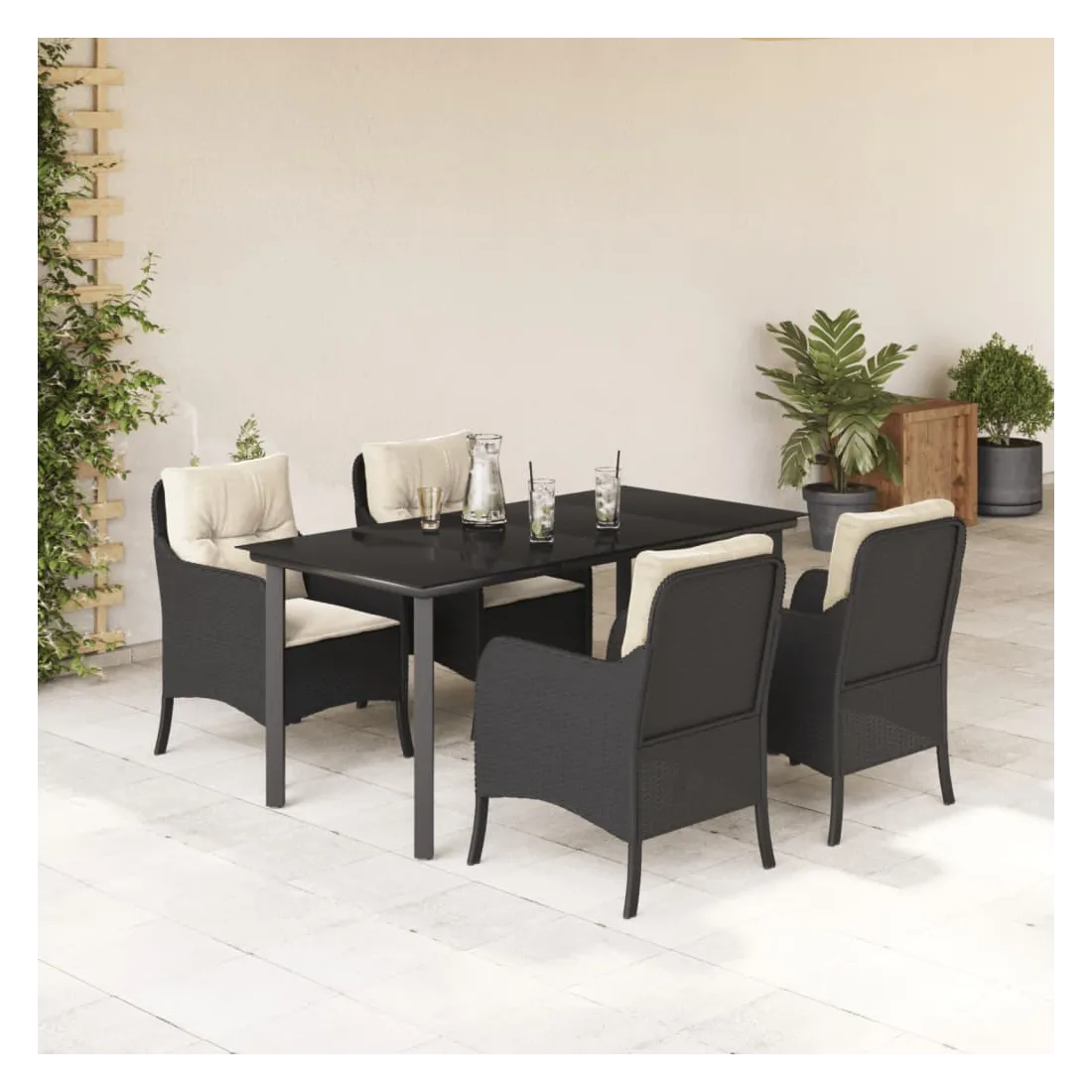 Cet ensemble de salle à manger de jardin est un excellent choix pour les repas en plein air ou pour vous détendre dans le jardin, l'arrière-cour ou le patio. Matériau durable : la résine tressée, également connue sous le nom de poly rotin, est un matériau synthétique solide et nécessitant peu d'entretien qui ressemble au rotin naturel. Il est léger, facile à nettoyer et couramment utilisé pour les meubles d'extérieur en raison de sa durabilité et de ses propriétés de résistance aux intempéries.Expérience d'assise confortable : ce mobilier d'extérieur, doté de coussins épais, offre une expérience d'assise confortable.Housse amovible et lavable : ces coussins de siège sont dotés de housses amovibles pour un lavage et un entretien faciles.Dessus en verre : le dessus de la table d'extérieur est fabriqué en verre trempé solide et durable, ce qui le rend facile à nettoyer avec un chiffon humide et ajoute une touche d'élégance à votre espace extérieur.Cadre robuste et stable : le cadre en acier enduit de poudre assure la solidité et la stabilité du meuble de jardin pour une utilisation quotidienne à l'extérieur. Bon à savoir :Pour que vos meubles d'extérieur restent beaux, nous vous recommandons de les protéger avec une housse imperméable.