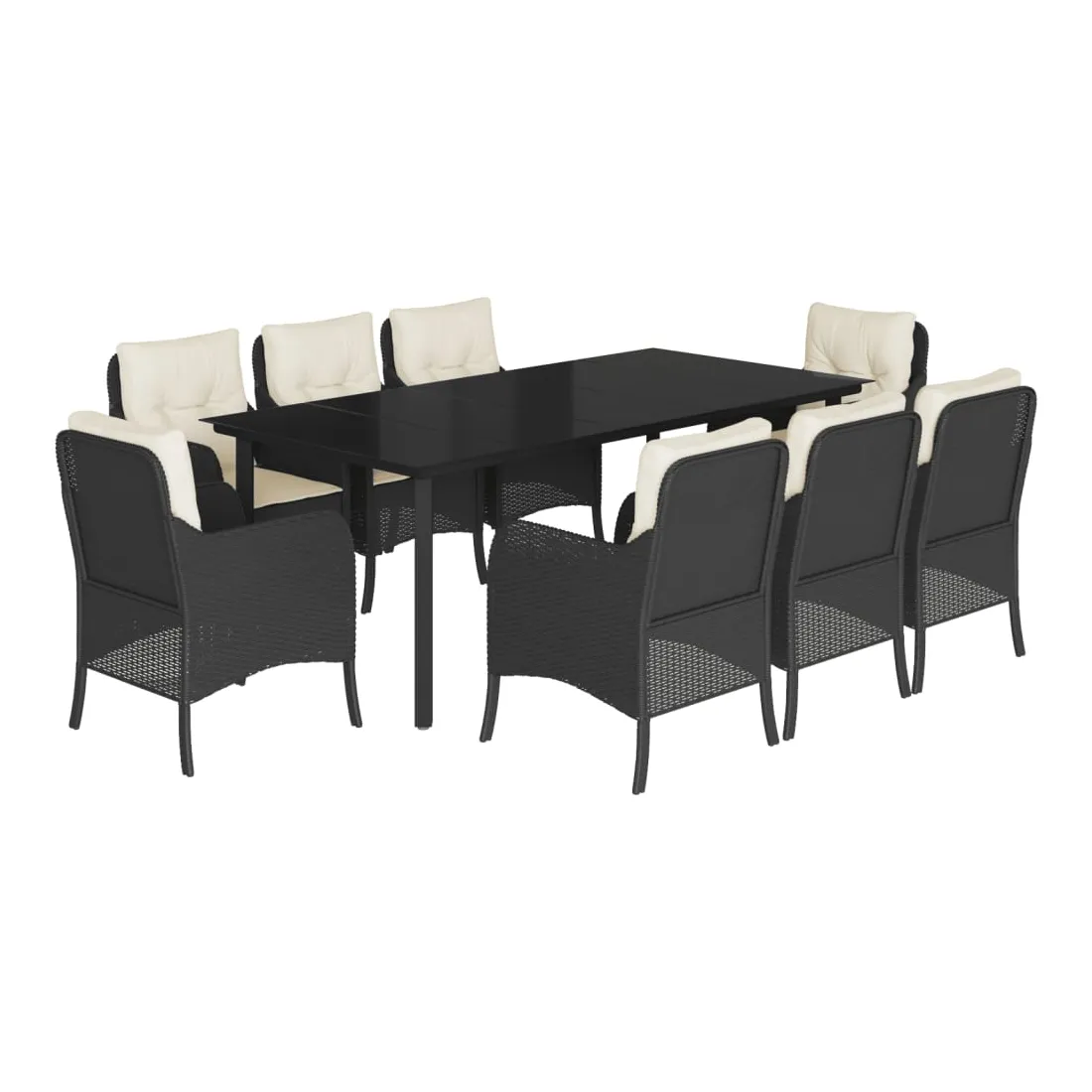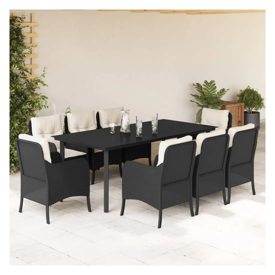 Ensemble à manger de jardin 9pcs coussins noir résine tressée