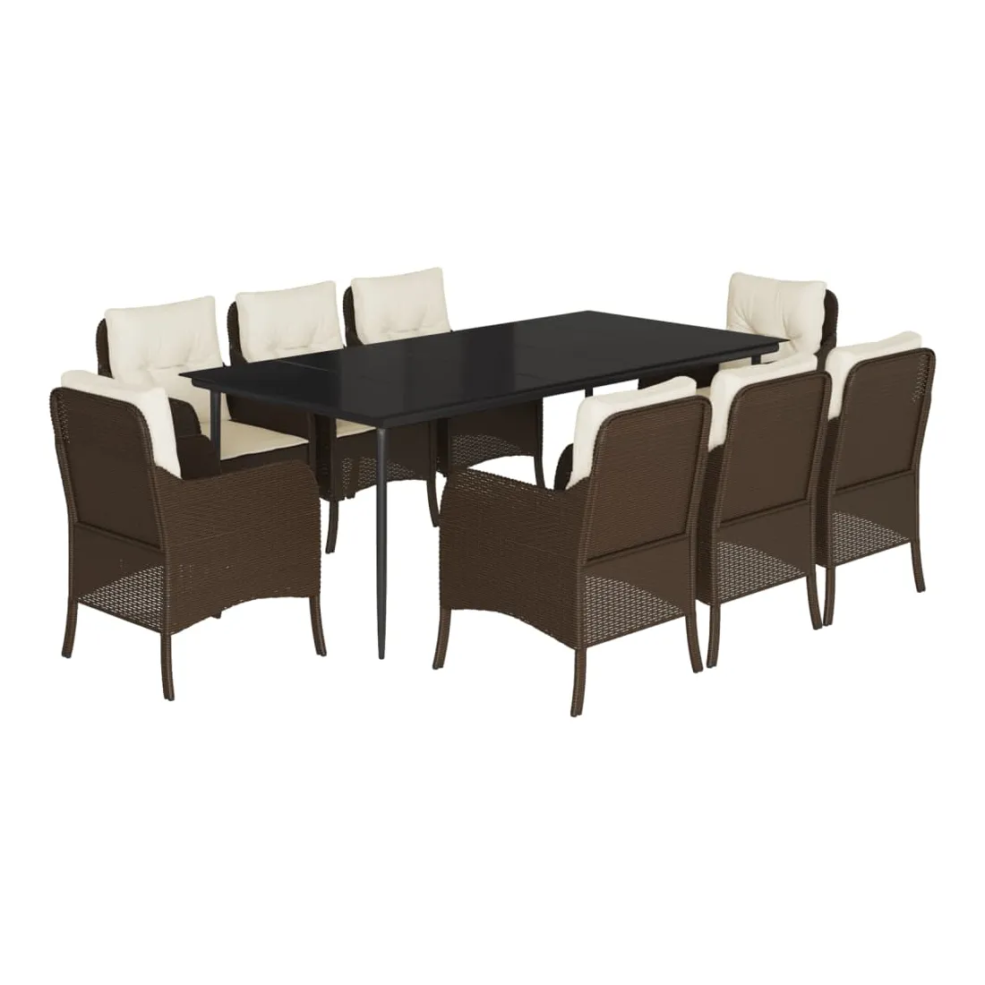 Cet ensemble de salle à manger de jardin est un excellent choix pour les repas en plein air ou pour vous détendre dans le jardin, l'arrière-cour ou le patio. Matériau durable : la résine tressée, également connue sous le nom de poly rotin, est un matériau synthétique solide et nécessitant peu d'entretien qui ressemble au rotin naturel. Il est léger, facile à nettoyer et couramment utilisé pour les meubles d'extérieur en raison de sa durabilité et de ses propriétés de résistance aux intempéries.Expérience d'assise confortable : ce mobilier d'extérieur, doté de coussins épais, offre une expérience d'assise confortable.Housse amovible et lavable : ces coussins de siège sont dotés de housses amovibles pour un lavage et un entretien faciles.Dessus en verre : le dessus de la table d'extérieur est fabriqué en verre trempé solide et durable, ce qui le rend facile à nettoyer avec un chiffon humide et ajoute une touche d'élégance à votre espace extérieur.Cadre robuste et stable : le cadre en acier enduit de poudre assure la solidité et la stabilité du meuble de jardin pour une utilisation quotidienne à l'extérieur. Bon à savoir :Pour que vos meubles d'extérieur restent beaux, nous vous recommandons de les protéger avec une housse imperméable.