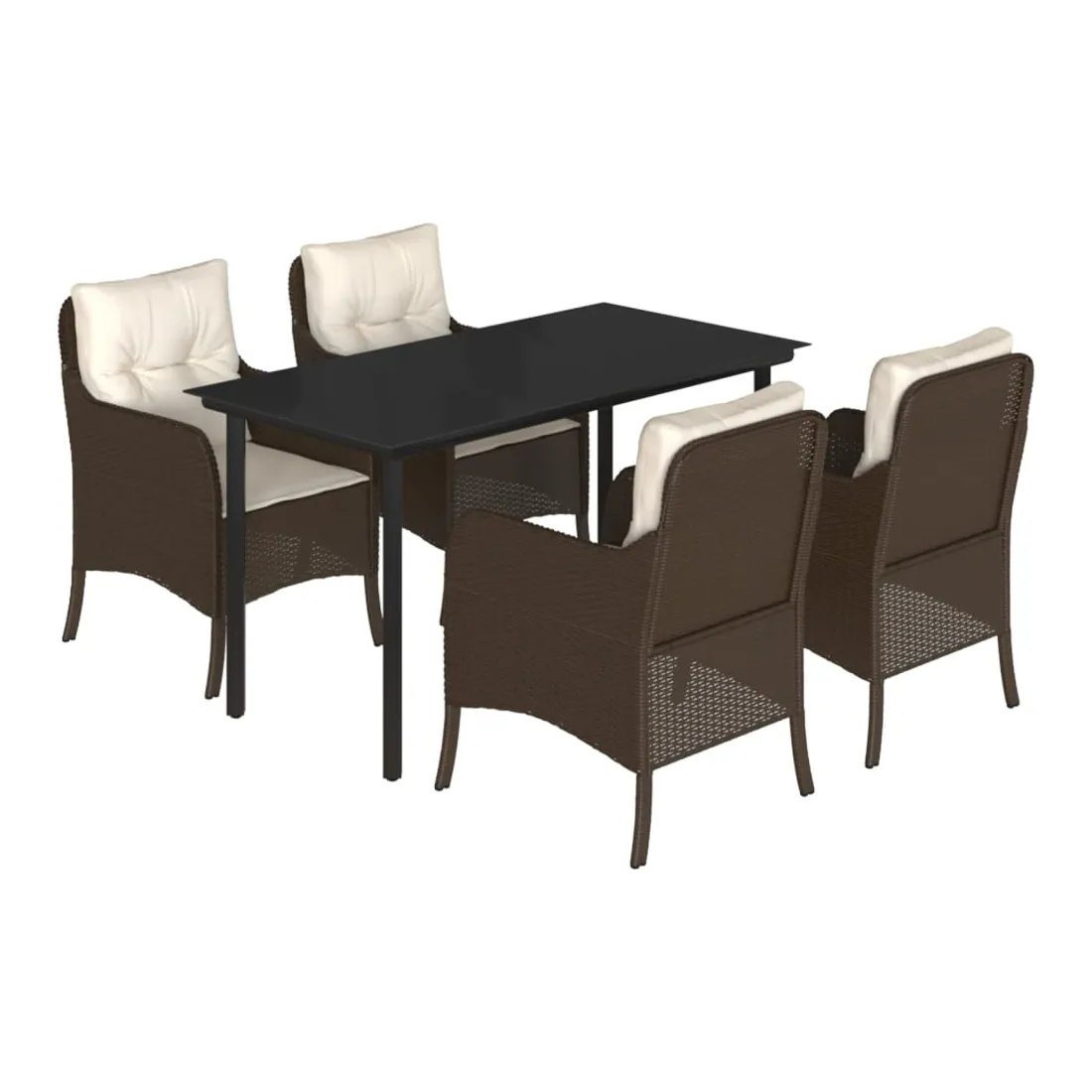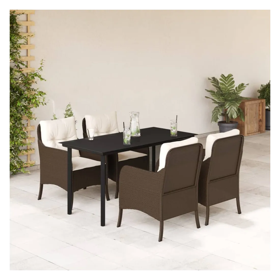 Cet ensemble de salle à manger de jardin est un excellent choix pour les repas en plein air ou pour vous détendre dans le jardin, l'arrière-cour ou le patio. Matériau durable : la résine tressée, également connue sous le nom de poly rotin, est un matériau synthétique solide et nécessitant peu d'entretien qui ressemble au rotin naturel. Il est léger, facile à nettoyer et couramment utilisé pour les meubles d'extérieur en raison de sa durabilité et de ses propriétés de résistance aux intempéries.Expérience d'assise confortable : ce mobilier d'extérieur, doté de coussins épais, offre une expérience d'assise confortable.Housse amovible et lavable : ces coussins de siège sont dotés de housses amovibles pour un lavage et un entretien faciles.Dessus en verre : le dessus de la table d'extérieur est fabriqué en verre trempé solide et durable, ce qui le rend facile à nettoyer avec un chiffon humide et ajoute une touche d'élégance à votre espace extérieur.Cadre robuste et stable : le cadre en acier enduit de poudre assure la solidité et la stabilité du meuble de jardin pour une utilisation quotidienne à l'extérieur. Bon à savoir :Pour que vos meubles d'extérieur restent beaux, nous vous recommandons de les protéger avec une housse imperméable.