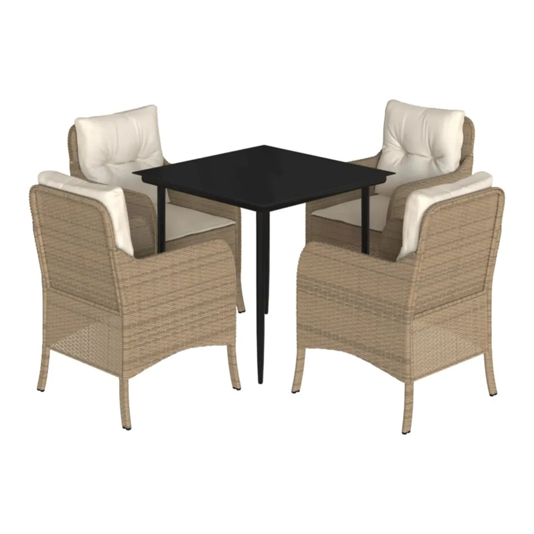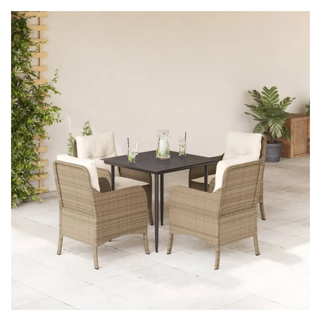 Cet ensemble de salle à manger de jardin est un excellent choix pour les repas en plein air ou pour vous détendre dans le jardin, l'arrière-cour ou le patio. Matériau durable : la résine tressée, également connue sous le nom de poly rotin, est un matériau synthétique solide et nécessitant peu d'entretien qui ressemble au rotin naturel. Il est léger, facile à nettoyer et couramment utilisé pour les meubles d'extérieur en raison de sa durabilité et de ses propriétés de résistance aux intempéries.Expérience d'assise confortable : ce mobilier d'extérieur, doté de coussins épais, offre une expérience d'assise confortable.Housse amovible et lavable : ces coussins de siège sont dotés de housses amovibles pour un lavage et un entretien faciles.Dessus en verre : le dessus de la table d'extérieur est fabriqué en verre trempé solide et durable, ce qui le rend facile à nettoyer avec un chiffon humide et ajoute une touche d'élégance à votre espace extérieur.Cadre robuste et stable : le cadre en acier enduit de poudre assure la solidité et la stabilité du meuble de jardin pour une utilisation quotidienne à l'extérieur. Bon à savoir :Pour que vos meubles d'extérieur restent beaux, nous vous recommandons de les protéger avec une housse imperméable.