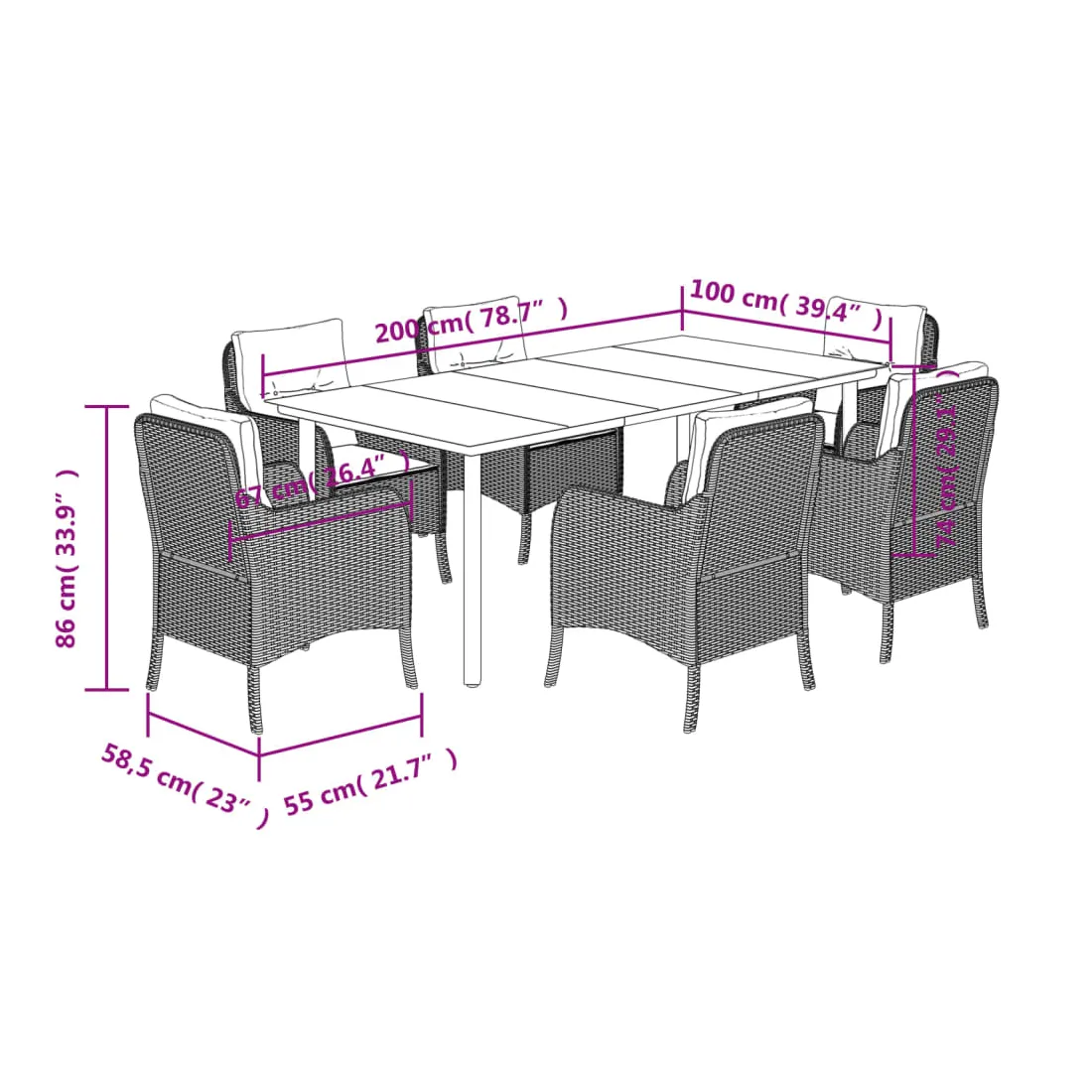 - Dimensions : 200 x 100 x 74 cm (L x l x H)