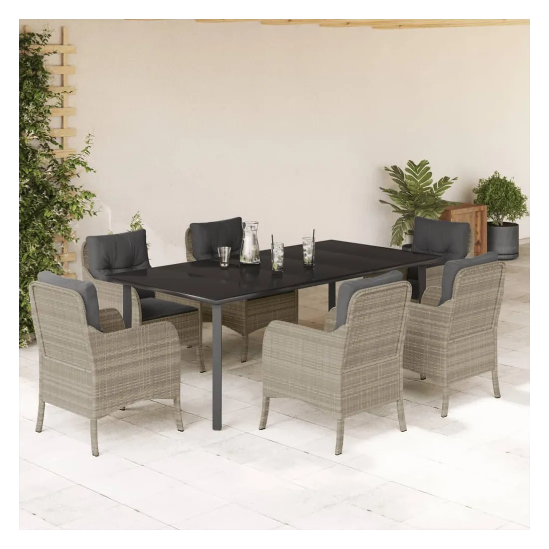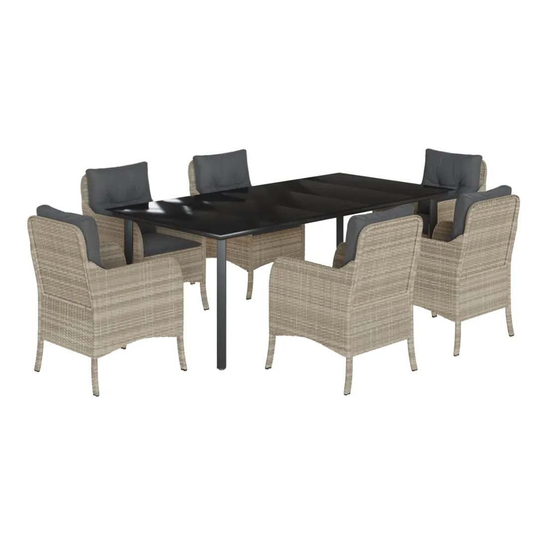Ensemble à manger de jardin et coussins 7 pcs gris clair rotin