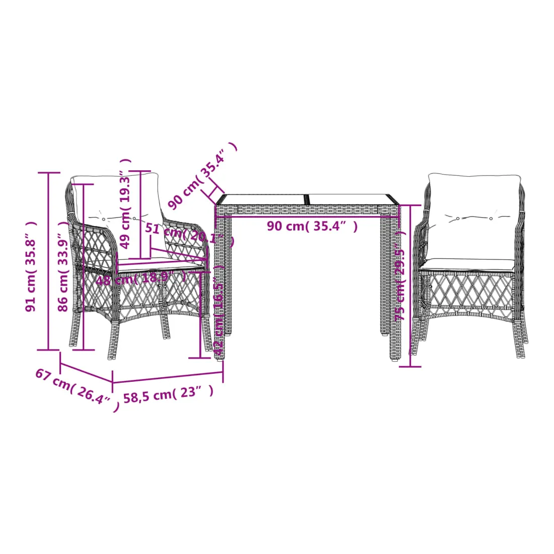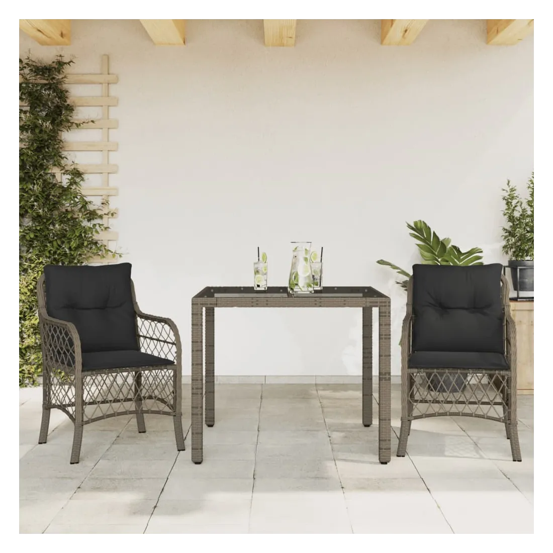 vidaXLSavourez un café ou discutez avec votre famille et vos amis dans le jardin, l'arrière-cour ou sur le balcon avec cet ensemble de bistro confortable ! Matériau durable : la résine tressée, également connue sous le nom de poly rotin, est un matériau synthétique solide et nécessitant peu d'entretien qui ressemble au rotin naturel. Il est léger, facile à nettoyer et couramment utilisé pour les meubles d'extérieur en raison de sa durabilité et de ses propriétés de résistance aux intempéries.Expérience d'assise confortable : cet ensemble de meubles d'extérieur, doté de coussins épais, offre une expérience d'assise confortable.Housse amovible et lavable : ces coussins de siège sont dotés de housses amovibles pour un lavage et un entretien faciles.Dessus en verre : le dessus de la table d'extérieur est fabriqué en verre trempé solide et durable, ce qui le rend facile à nettoyer avec un chiffon humide et ajoute une touche d'élégance à votre espace extérieur. Bon à savoir :Pour que vos meubles d'extérieur restent beaux, nous vous recommandons de les protéger avec une housse imperméable.