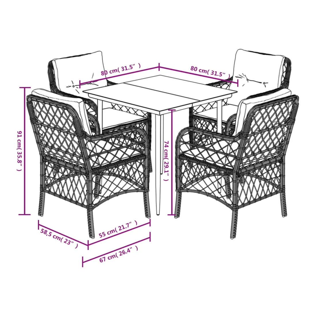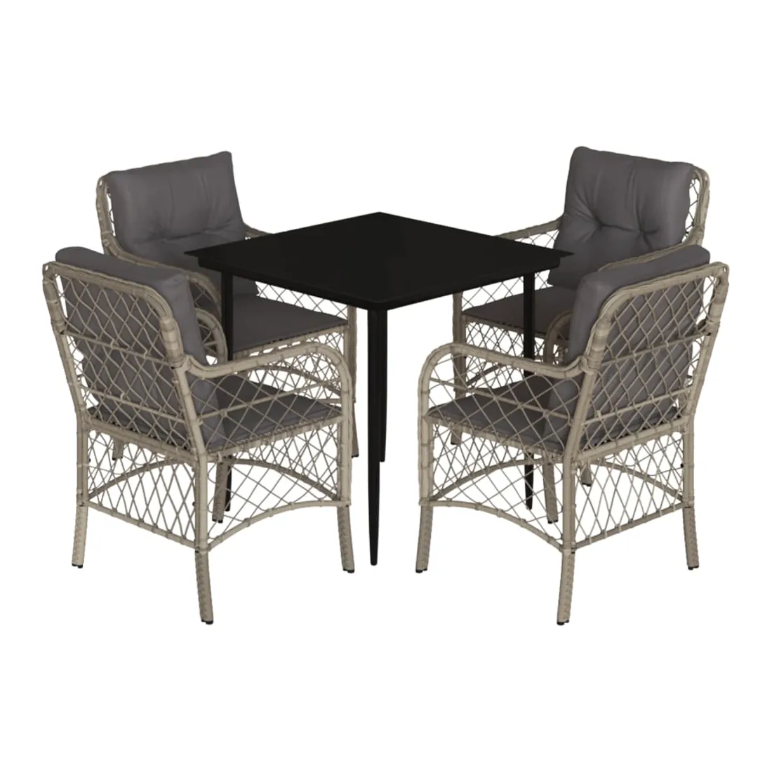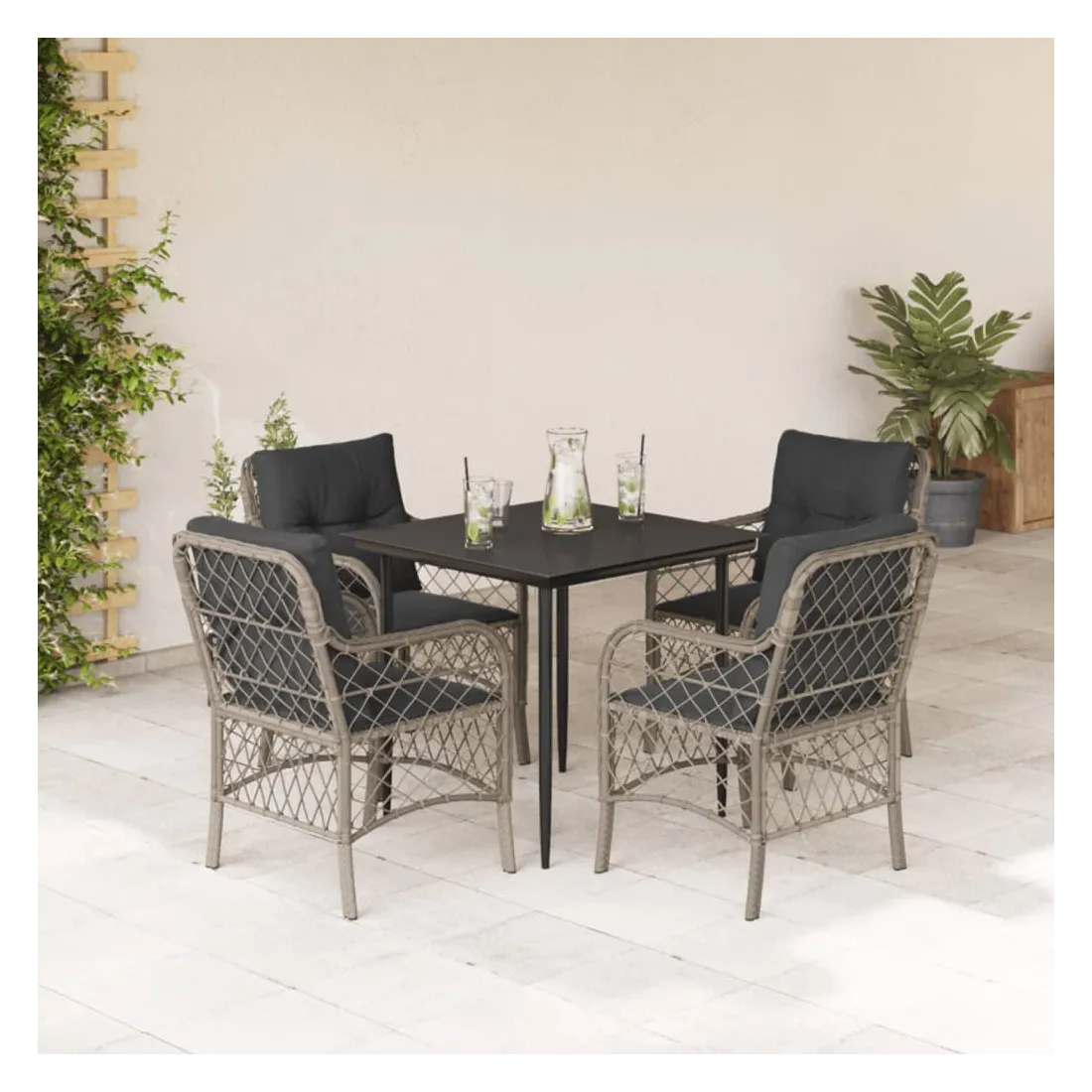Cet ensemble de salle à manger de jardin est un excellent choix pour les repas en plein air ou pour vous détendre dans le jardin, l'arrière-cour ou le patio. Matériau durable : la résine tressée, également connue sous le nom de poly rotin, est un matériau synthétique solide et nécessitant peu d'entretien qui ressemble au rotin naturel. Il est léger, facile à nettoyer et couramment utilisé pour les meubles d'extérieur en raison de sa durabilité et de ses propriétés de résistance aux intempéries.Expérience d'assise confortable : ce mobilier d'extérieur, doté de coussins épais, offre une expérience d'assise confortable.Housse amovible et lavable : ces coussins de siège sont dotés de housses amovibles pour un lavage et un entretien faciles.Dessus en verre : le dessus de la table d'extérieur est fabriqué en verre trempé solide et durable, ce qui le rend facile à nettoyer avec un chiffon humide et ajoute une touche d'élégance à votre espace extérieur.Cadre robuste et stable : le cadre en acier enduit de poudre assure la solidité et la stabilité du meuble de jardin pour une utilisation quotidienne à l'extérieur. Bon à savoir :Pour que vos meubles d'extérieur restent beaux, nous vous recommandons de les protéger avec une housse imperméable.