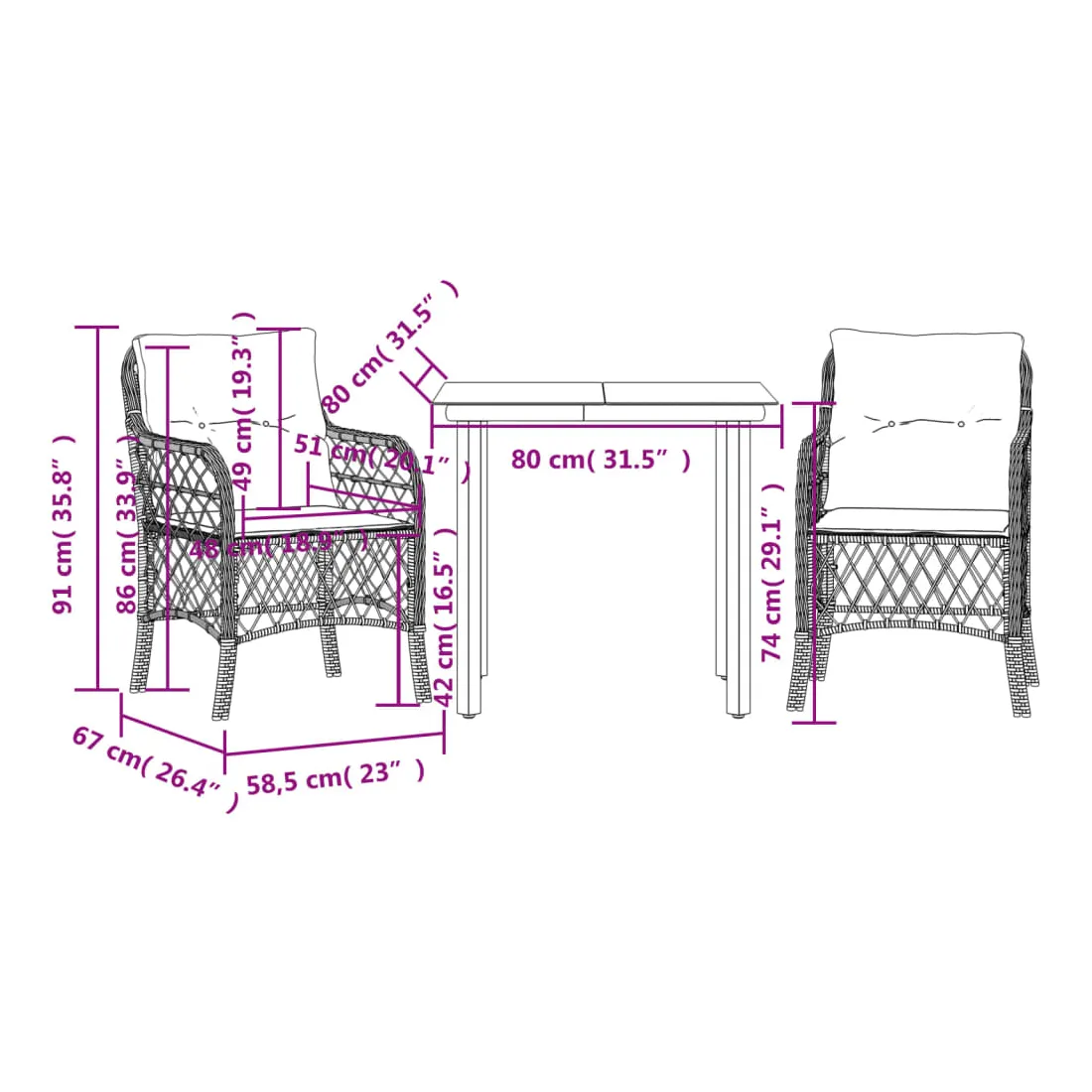 - Dimensions : 80 x 80 x 74 cm (l x P x H)
