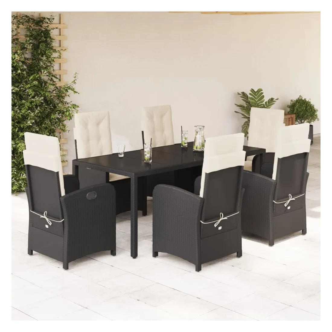 Cet ensemble de salle à manger de jardin est un excellent choix pour les repas en plein air ou pour vous détendre dans le jardin, dans l'arrière-cour ou sur la terrasse. Matériau durable : la résine tressée, également connue sous le nom de poly rotin, est un matériau synthétique solide et nécessitant peu d'entretien qui ressemble au rotin naturel. Il est léger, facile à nettoyer et couramment utilisé pour les meubles d'extérieur en raison de sa durabilité et de ses propriétés de résistance aux intempéries.Dossier réglable : ce siège de jardin est doté d'une poignée. Vous pouvez régler le dossier dans n'importe quelle position en tirant sur la poignée et le remettre rapidement dans sa position initiale.Expérience d'assise confortable : ce mobilier d'extérieur, doté de coussins épais, offre une expérience d'assise confortable.Housse amovible et lavable : ces coussins de siège sont dotés de housses amovibles pour un lavage et un entretien faciles. Les coussins de dossier ont un rabat à l'arrière pour une fixation facile aux dossiers.Dessus en verre : le dessus de la table d'extérieur est fabriqué en verre trempé solide et durable, ce qui le rend facile à nettoyer avec un chiffon humide et ajoute une touche d'élégance à votre espace extérieur. Bon à savoir :Pour que vos meubles d'extérieur restent beaux, nous vous recommandons de les protéger avec une housse imperméable.
