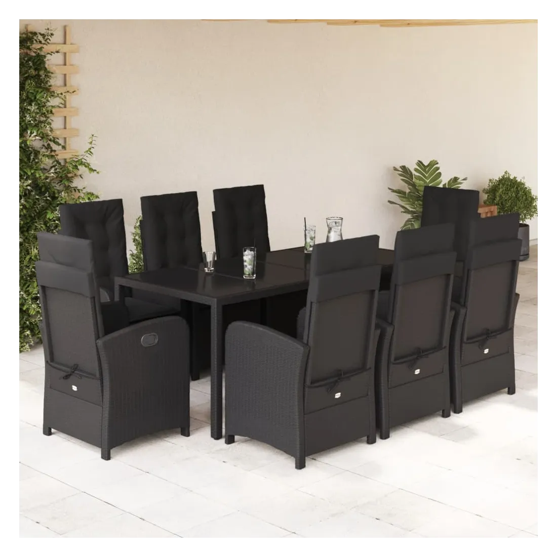 Cet ensemble de salle à manger de jardin est un excellent choix pour les repas en plein air ou pour vous détendre dans le jardin, dans l'arrière-cour ou sur la terrasse. Matériau durable : la résine tressée, également connue sous le nom de poly rotin, est un matériau synthétique solide et nécessitant peu d'entretien qui ressemble au rotin naturel. Il est léger, facile à nettoyer et couramment utilisé pour les meubles d'extérieur en raison de sa durabilité et de ses propriétés de résistance aux intempéries.Dossier réglable : ce siège de jardin est doté d'une poignée. Vous pouvez régler le dossier dans n'importe quelle position en tirant sur la poignée et le remettre rapidement dans sa position initiale.Expérience d'assise confortable : ce mobilier d'extérieur, doté de coussins épais, offre une expérience d'assise confortable.Housse amovible et lavable : ces coussins de siège sont dotés de housses amovibles pour un lavage et un entretien faciles. Les coussins de dossier ont un rabat à l'arrière pour une fixation facile aux dossiers.Dessus en verre : le dessus de la table d'extérieur est fabriqué en verre trempé solide et durable, ce qui le rend facile à nettoyer avec un chiffon humide et ajoute une touche d'élégance à votre espace extérieur. Bon à savoir :Pour que vos meubles d'extérieur restent beaux, nous vous recommandons de les protéger avec une housse imperméable.