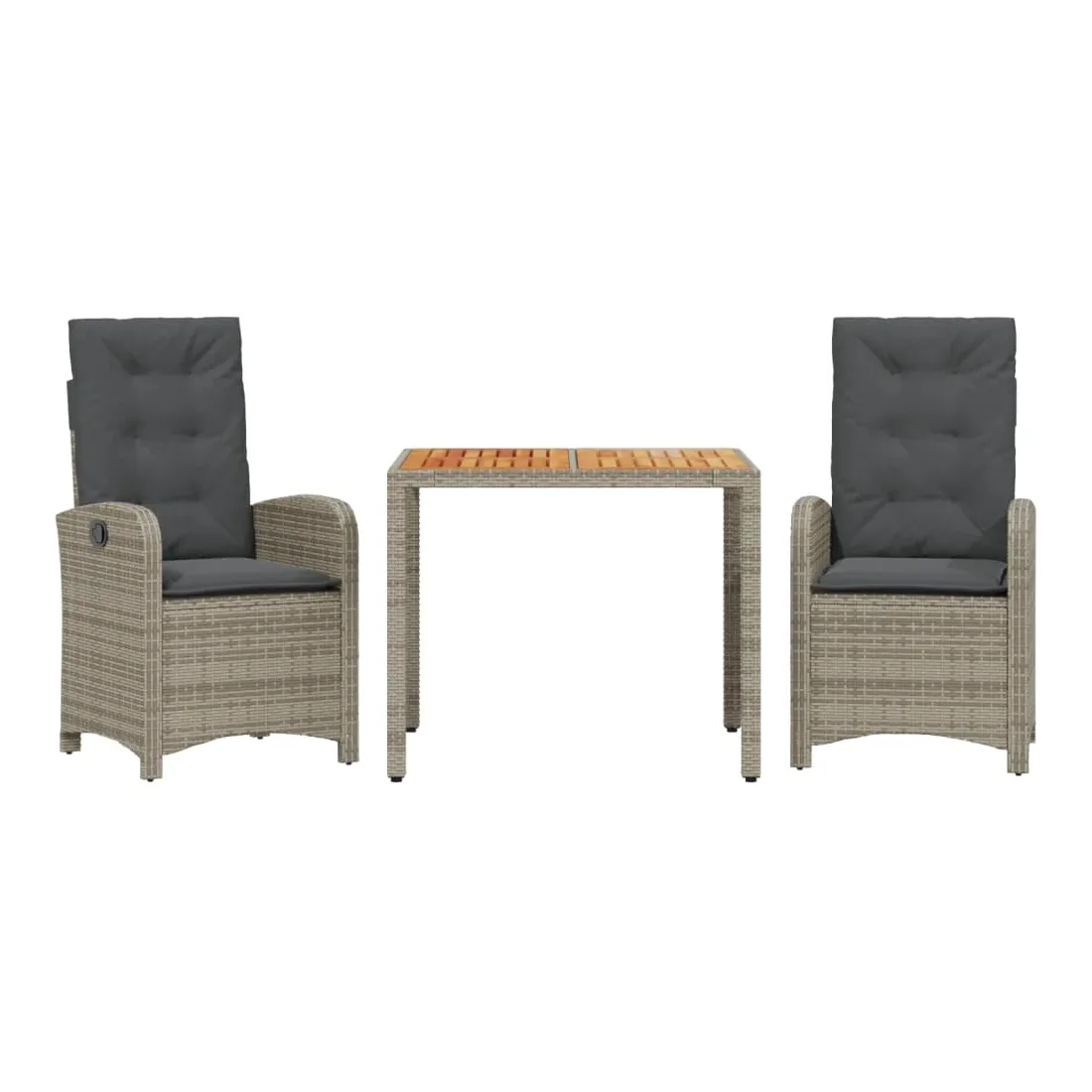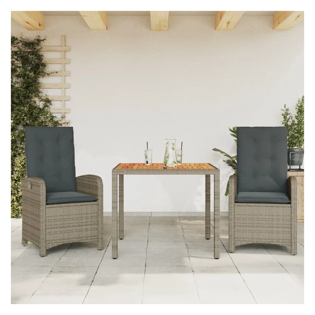 Ensemble à manger de jardin 3 pcs coussins gris résine tressée