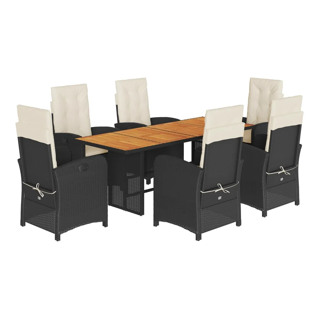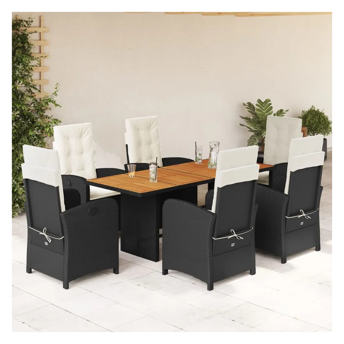 Cet ensemble de salle à manger de jardin est un excellent choix pour les repas en plein air ou pour vous détendre dans le jardin, dans l'arrière-cour ou sur la terrasse. Matériau durable : la résine tressée, également connue sous le nom de poly rotin, est un matériau synthétique solide et nécessitant peu d'entretien qui ressemble au rotin naturel. Il est léger, facile à nettoyer et couramment utilisé pour les meubles d'extérieur en raison de sa durabilité et de ses propriétés de résistance aux intempéries.Rangement compact : ces chaises sont dotées d'un dossier rabattable, ce qui permet de les ranger facilement sous la table. Une fois pliées, elles se rangent parfaitement sous la table, formant un cube peu encombrant. Expérience d'assise confortable : ce mobilier d'extérieur, doté de coussins épais, offre une expérience d'assise confortable.Housse amovible et lavable : ces coussins de siège sont dotés de housses amovibles pour un lavage et un entretien faciles.Dessus stable et facile à nettoyer : cette table de jardin a un dessus en bois d'acacia robuste, durable et facile à nettoyer avec un chiffon humide. Bon à savoir : Pour que vos meubles d'extérieur restent beaux, nous vous recommandons de les protéger avec une housse imperméable.