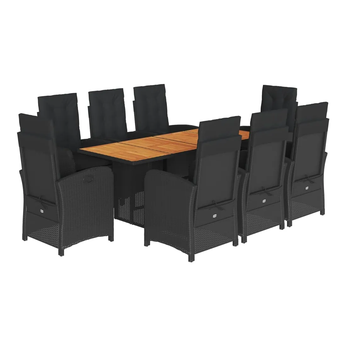 Cet ensemble de salle à manger de jardin est un excellent choix pour les repas en plein air ou pour vous détendre dans le jardin, dans l'arrière-cour ou sur la terrasse. Matériau durable : la résine tressée, également connue sous le nom de poly rotin, est un matériau synthétique solide et nécessitant peu d'entretien qui ressemble au rotin naturel. Il est léger, facile à nettoyer et couramment utilisé pour les meubles d'extérieur en raison de sa durabilité et de ses propriétés de résistance aux intempéries.Rangement compact : ces chaises sont dotées d'un dossier rabattable, ce qui permet de les ranger facilement sous la table. Une fois pliées, elles se rangent parfaitement sous la table, formant un cube peu encombrant. Expérience d'assise confortable : ce mobilier d'extérieur, doté de coussins épais, offre une expérience d'assise confortable.Housse amovible et lavable : ces coussins de siège sont dotés de housses amovibles pour un lavage et un entretien faciles.Dessus stable et facile à nettoyer : cette table de jardin a un dessus en bois d'acacia robuste, durable et facile à nettoyer avec un chiffon humide. Bon à savoir : Pour que vos meubles d'extérieur restent beaux, nous vous recommandons de les protéger avec une housse imperméable.