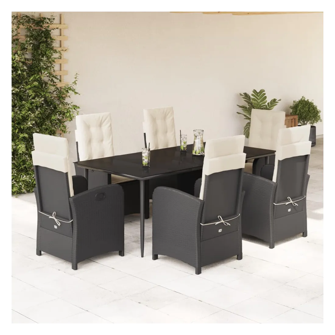 Cet ensemble de salle à manger de jardin est un excellent choix pour les repas en plein air ou pour vous détendre dans le jardin, dans l'arrière-cour ou sur la terrasse. Matériau durable : la résine tressée, également connue sous le nom de poly rotin, est un matériau synthétique solide et nécessitant peu d'entretien qui ressemble au rotin naturel. Il est léger, facile à nettoyer et couramment utilisé pour les meubles d'extérieur en raison de sa durabilité et de ses propriétés de résistance aux intempéries.Dossier réglable : ce siège de jardin est doté d'une poignée. Vous pouvez régler le dossier dans n'importe quelle position en tirant sur la poignée et le remettre rapidement dans sa position initiale.Expérience d'assise confortable : ce mobilier d'extérieur, doté de coussins épais, offre une expérience d'assise confortable.Housse amovible et lavable : ces coussins de siège sont dotés de housses amovibles pour un lavage et un entretien faciles. Les coussins de dossier ont un rabat à l'arrière pour une fixation facile aux dossiers.Dessus en verre : le dessus de la table d'extérieur est fabriqué en verre trempé solide et durable, ce qui le rend facile à nettoyer avec un chiffon humide et ajoute une touche d'élégance à votre espace extérieur. Bon à savoir :Pour que vos meubles d'extérieur restent beaux, nous vous recommandons de les protéger avec une housse imperméable.