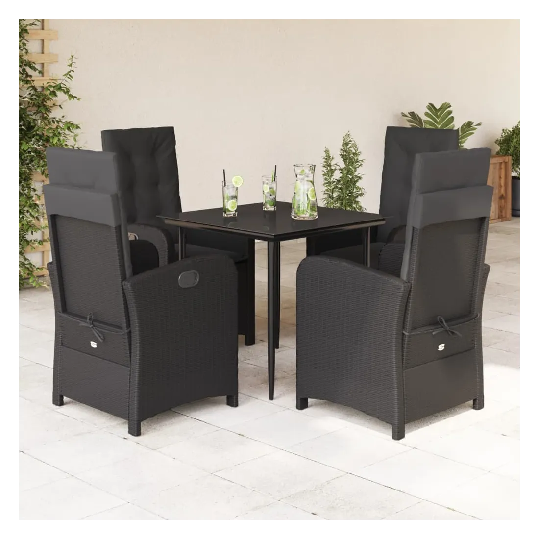 Cet ensemble de salle à manger de jardin est un excellent choix pour les repas en plein air ou pour vous détendre dans le jardin, dans l'arrière-cour ou sur la terrasse. Matériau durable : la résine tressée, également connue sous le nom de poly rotin, est un matériau synthétique solide et nécessitant peu d'entretien qui ressemble au rotin naturel. Il est léger, facile à nettoyer et couramment utilisé pour les meubles d'extérieur en raison de sa durabilité et de ses propriétés de résistance aux intempéries.Dossier réglable : ce siège de jardin est doté d'une poignée. Vous pouvez régler le dossier dans n'importe quelle position en tirant sur la poignée et le remettre rapidement dans sa position initiale.Expérience d'assise confortable : ce mobilier d'extérieur, doté de coussins épais, offre une expérience d'assise confortable.Housse amovible et lavable : ces coussins de siège sont dotés de housses amovibles pour un lavage et un entretien faciles. Les coussins de dossier ont un rabat à l'arrière pour une fixation facile aux dossiers.Dessus en verre : le dessus de la table d'extérieur est fabriqué en verre trempé solide et durable, ce qui le rend facile à nettoyer avec un chiffon humide et ajoute une touche d'élégance à votre espace extérieur. Bon à savoir :Pour que vos meubles d'extérieur restent beaux, nous vous recommandons de les protéger avec une housse imperméable.