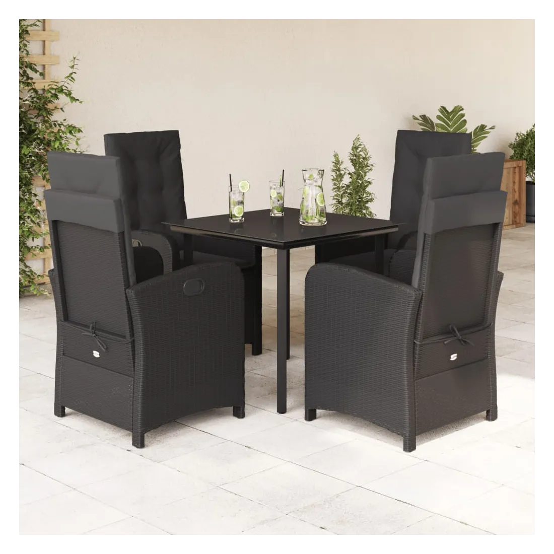 Cet ensemble de salle à manger de jardin est un excellent choix pour les repas en plein air ou pour vous détendre dans le jardin, dans l'arrière-cour ou sur la terrasse. Matériau durable : la résine tressée, également connue sous le nom de poly rotin, est un matériau synthétique solide et nécessitant peu d'entretien qui ressemble au rotin naturel. Il est léger, facile à nettoyer et couramment utilisé pour les meubles d'extérieur en raison de sa durabilité et de ses propriétés de résistance aux intempéries.Dossier réglable : ce siège de jardin est doté d'une poignée. Vous pouvez régler le dossier dans n'importe quelle position en tirant sur la poignée et le remettre rapidement dans sa position initiale.Expérience d'assise confortable : ce mobilier d'extérieur, doté de coussins épais, offre une expérience d'assise confortable.Housse amovible et lavable : ces coussins de siège sont dotés de housses amovibles pour un lavage et un entretien faciles. Les coussins de dossier ont un rabat à l'arrière pour une fixation facile aux dossiers.Dessus en verre : le dessus de la table d'extérieur est fabriqué en verre trempé solide et durable, ce qui le rend facile à nettoyer avec un chiffon humide et ajoute une touche d'élégance à votre espace extérieur. Bon à savoir :Pour que vos meubles d'extérieur restent beaux, nous vous recommandons de les protéger avec une housse imperméable.