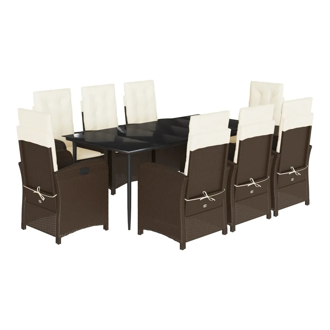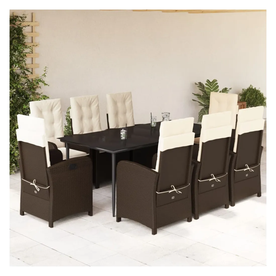 Cet ensemble de salle à manger de jardin est un excellent choix pour les repas en plein air ou pour vous détendre dans le jardin, dans l'arrière-cour ou sur la terrasse. Matériau durable : la résine tressée, également connue sous le nom de poly rotin, est un matériau synthétique solide et nécessitant peu d'entretien qui ressemble au rotin naturel. Il est léger, facile à nettoyer et couramment utilisé pour les meubles d'extérieur en raison de sa durabilité et de ses propriétés de résistance aux intempéries.Dossier réglable : ce siège de jardin est doté d'une poignée. Vous pouvez régler le dossier dans n'importe quelle position en tirant sur la poignée et le remettre rapidement dans sa position initiale.Expérience d'assise confortable : ce mobilier d'extérieur, doté de coussins épais, offre une expérience d'assise confortable.Housse amovible et lavable : ces coussins de siège sont dotés de housses amovibles pour un lavage et un entretien faciles. Les coussins de dossier ont un rabat à l'arrière pour une fixation facile aux dossiers.Dessus en verre : le dessus de la table d'extérieur est fabriqué en verre trempé solide et durable, ce qui le rend facile à nettoyer avec un chiffon humide et ajoute une touche d'élégance à votre espace extérieur. Bon à savoir :Pour que vos meubles d'extérieur restent beaux, nous vous recommandons de les protéger avec une housse imperméable.