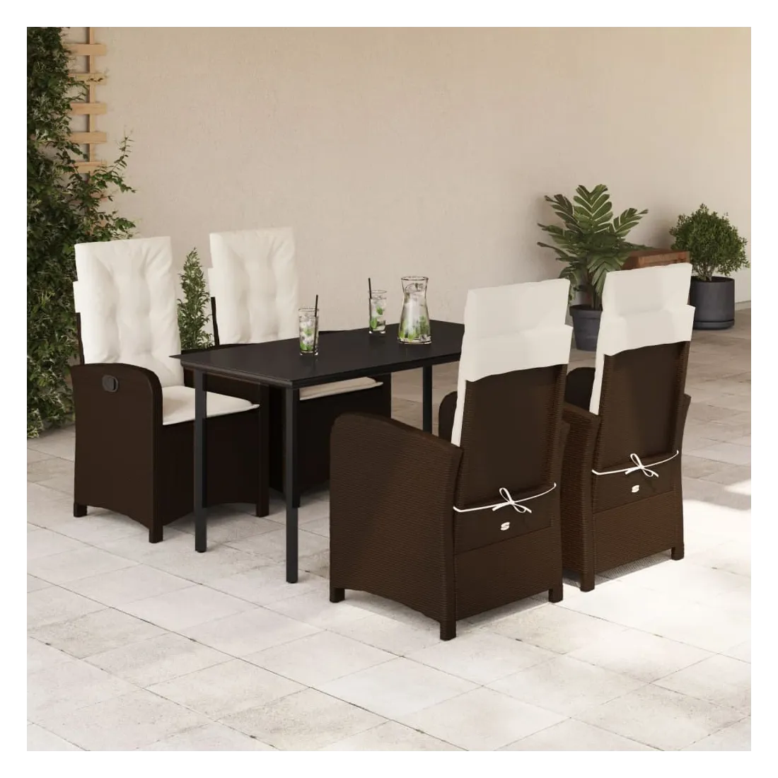 Cet ensemble de salle à manger de jardin est un excellent choix pour les repas en plein air ou pour vous détendre dans le jardin, dans l'arrière-cour ou sur la terrasse. Matériau durable : la résine tressée, également connue sous le nom de poly rotin, est un matériau synthétique solide et nécessitant peu d'entretien qui ressemble au rotin naturel. Il est léger, facile à nettoyer et couramment utilisé pour les meubles d'extérieur en raison de sa durabilité et de ses propriétés de résistance aux intempéries.Dossier réglable : ce siège de jardin est doté d'une poignée. Vous pouvez régler le dossier dans n'importe quelle position en tirant sur la poignée et le remettre rapidement dans sa position initiale.Expérience d'assise confortable : ce mobilier d'extérieur, doté de coussins épais, offre une expérience d'assise confortable.Housse amovible et lavable : ces coussins de siège sont dotés de housses amovibles pour un lavage et un entretien faciles. Les coussins de dossier ont un rabat à l'arrière pour une fixation facile aux dossiers.Dessus en verre : le dessus de la table d'extérieur est fabriqué en verre trempé solide et durable, ce qui le rend facile à nettoyer avec un chiffon humide et ajoute une touche d'élégance à votre espace extérieur. Bon à savoir :Pour que vos meubles d'extérieur restent beaux, nous vous recommandons de les protéger avec une housse imperméable.