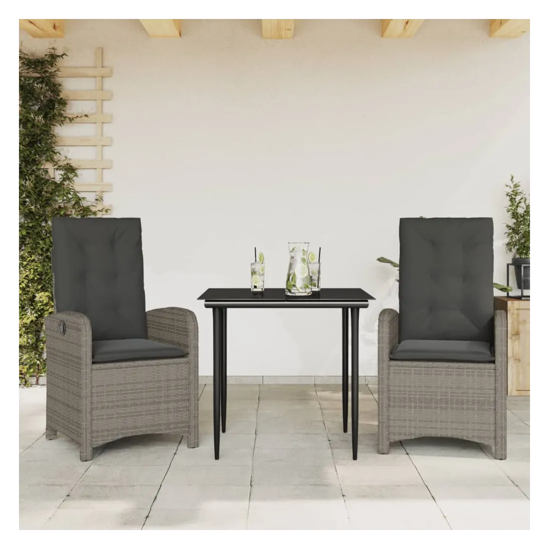 Cet ensemble de salle à manger de jardin est un excellent choix pour les repas en plein air ou pour vous détendre dans le jardin, dans l'arrière-cour ou sur la terrasse. Matériau durable : la résine tressée, également connue sous le nom de poly rotin, est un matériau synthétique solide et nécessitant peu d'entretien qui ressemble au rotin naturel. Il est léger, facile à nettoyer et couramment utilisé pour les meubles d'extérieur en raison de sa durabilité et de ses propriétés de résistance aux intempéries.Dossier réglable : ce siège de jardin est doté d'une poignée. Vous pouvez régler le dossier dans n'importe quelle position en tirant sur la poignée et le remettre rapidement dans sa position initiale.Expérience d'assise confortable : ce mobilier d'extérieur, doté de coussins épais, offre une expérience d'assise confortable.Housse amovible et lavable : ces coussins de siège sont dotés de housses amovibles pour un lavage et un entretien faciles. Les coussins de dossier ont un rabat à l'arrière pour une fixation facile aux dossiers.Dessus en verre : le dessus de la table d'extérieur est fabriqué en verre trempé solide et durable, ce qui le rend facile à nettoyer avec un chiffon humide et ajoute une touche d'élégance à votre espace extérieur. Bon à savoir :Pour que vos meubles d'extérieur restent beaux, nous vous recommandons de les protéger avec une housse imperméable.