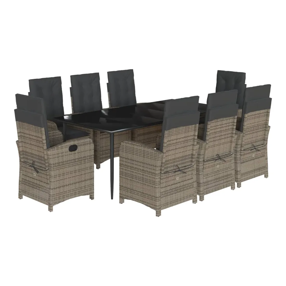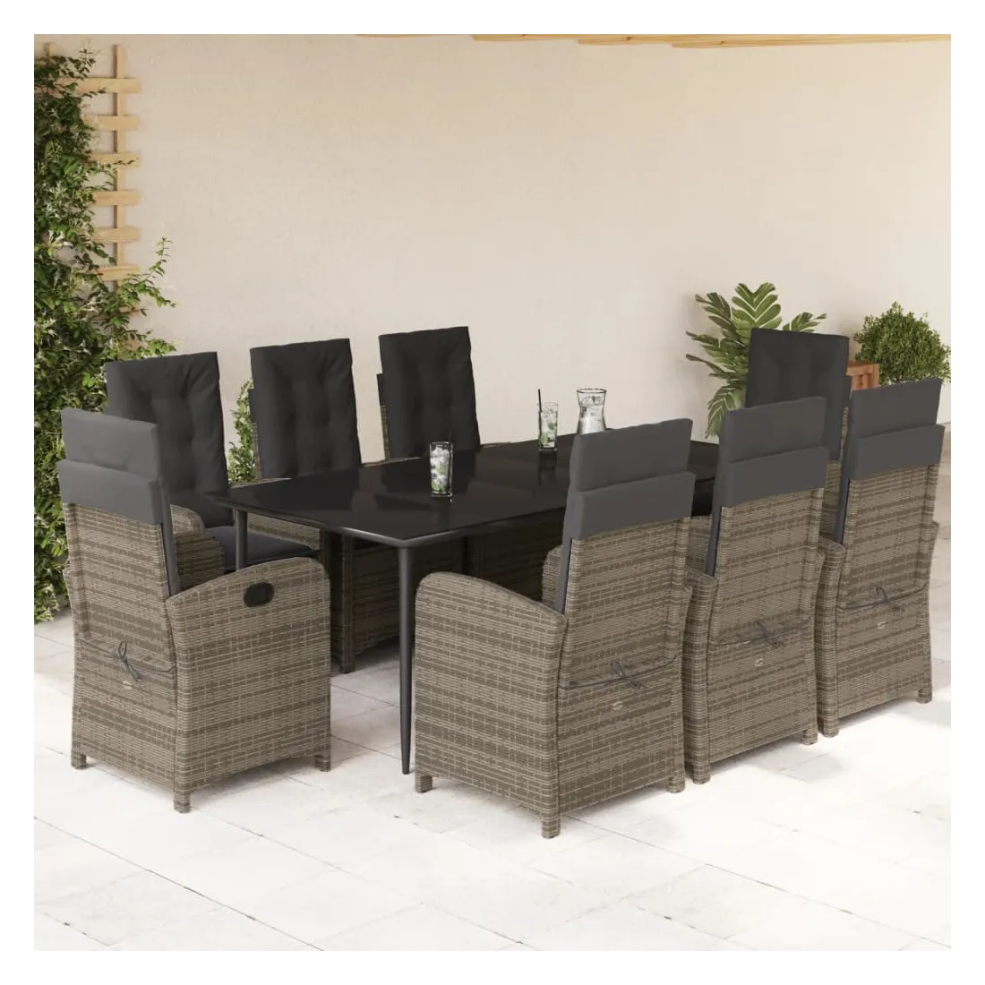 Cet ensemble de salle à manger de jardin est un excellent choix pour les repas en plein air ou pour vous détendre dans le jardin, dans l'arrière-cour ou sur la terrasse. Matériau durable : la résine tressée, également connue sous le nom de poly rotin, est un matériau synthétique solide et nécessitant peu d'entretien qui ressemble au rotin naturel. Il est léger, facile à nettoyer et couramment utilisé pour les meubles d'extérieur en raison de sa durabilité et de ses propriétés de résistance aux intempéries.Dossier réglable : ce siège de jardin est doté d'une poignée. Vous pouvez régler le dossier dans n'importe quelle position en tirant sur la poignée et le remettre rapidement dans sa position initiale.Expérience d'assise confortable : ce mobilier d'extérieur, doté de coussins épais, offre une expérience d'assise confortable.Housse amovible et lavable : ces coussins de siège sont dotés de housses amovibles pour un lavage et un entretien faciles. Les coussins de dossier ont un rabat à l'arrière pour une fixation facile aux dossiers.Dessus en verre : le dessus de la table d'extérieur est fabriqué en verre trempé solide et durable, ce qui le rend facile à nettoyer avec un chiffon humide et ajoute une touche d'élégance à votre espace extérieur. Bon à savoir :Pour que vos meubles d'extérieur restent beaux, nous vous recommandons de les protéger avec une housse imperméable.