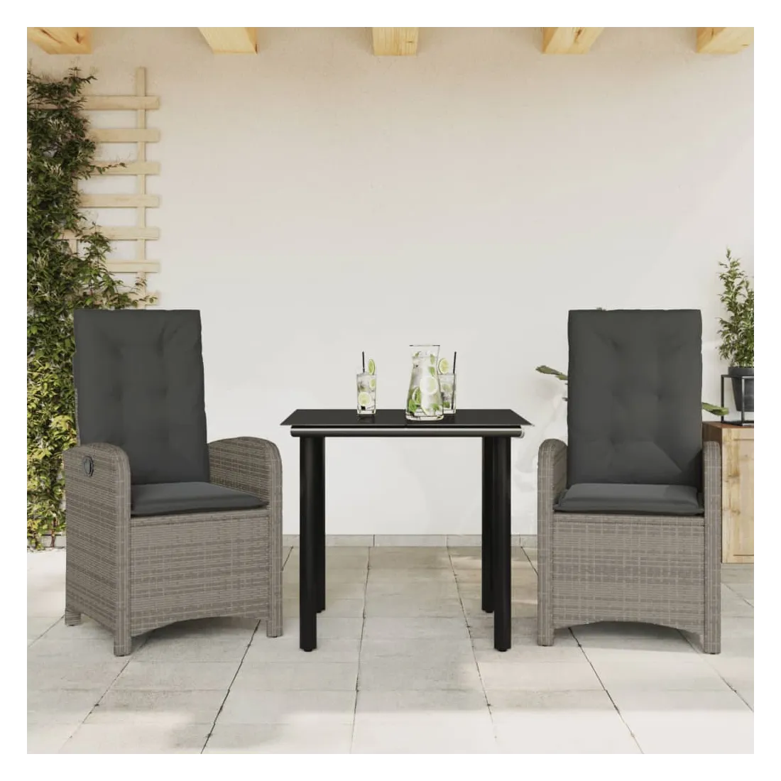 Cet ensemble de salle à manger de jardin est un excellent choix pour les repas en plein air ou pour vous détendre dans le jardin, dans l'arrière-cour ou sur la terrasse. Matériau durable : la résine tressée, également connue sous le nom de poly rotin, est un matériau synthétique solide et nécessitant peu d'entretien qui ressemble au rotin naturel. Il est léger, facile à nettoyer et couramment utilisé pour les meubles d'extérieur en raison de sa durabilité et de ses propriétés de résistance aux intempéries.Dossier réglable : ce siège de jardin est doté d'une poignée. Vous pouvez régler le dossier dans n'importe quelle position en tirant sur la poignée et le remettre rapidement dans sa position initiale.Expérience d'assise confortable : ce mobilier d'extérieur, doté de coussins épais, offre une expérience d'assise confortable.Housse amovible et lavable : ces coussins de siège sont dotés de housses amovibles pour un lavage et un entretien faciles. Les coussins de dossier ont un rabat à l'arrière pour une fixation facile aux dossiers.Dessus en verre : le dessus de la table d'extérieur est fabriqué en verre trempé solide et durable, ce qui le rend facile à nettoyer avec un chiffon humide et ajoute une touche d'élégance à votre espace extérieur. Bon à savoir :Pour que vos meubles d'extérieur restent beaux, nous vous recommandons de les protéger avec une housse imperméable.