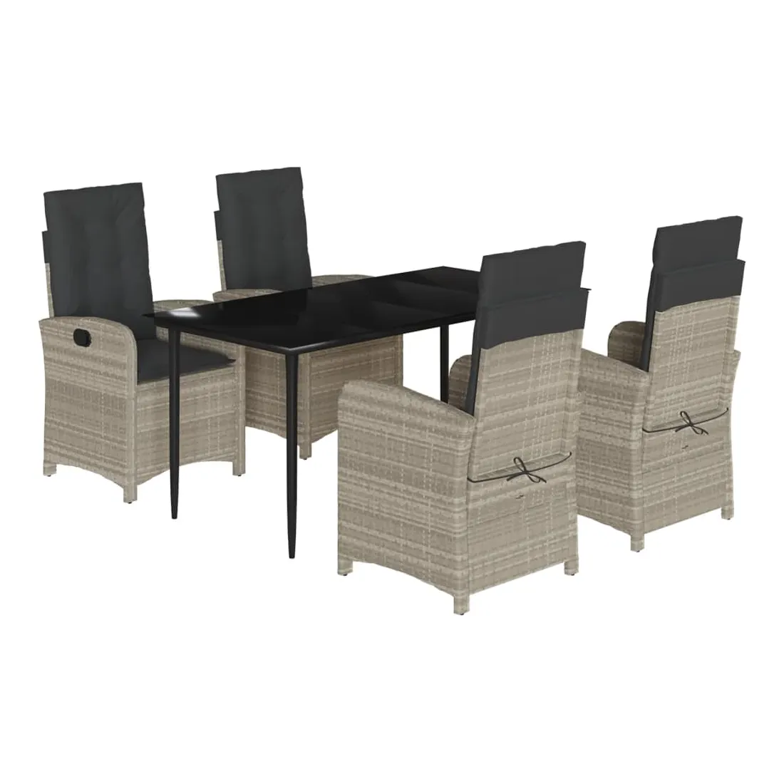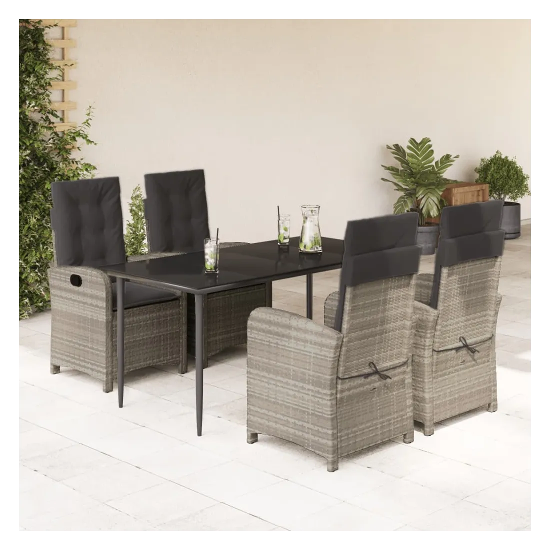 Cet ensemble de salle à manger de jardin est un excellent choix pour les repas en plein air ou pour vous détendre dans le jardin, dans l'arrière-cour ou sur la terrasse. Matériau durable : la résine tressée, également connue sous le nom de poly rotin, est un matériau synthétique solide et nécessitant peu d'entretien qui ressemble au rotin naturel. Il est léger, facile à nettoyer et couramment utilisé pour les meubles d'extérieur en raison de sa durabilité et de ses propriétés de résistance aux intempéries.Dossier réglable : ce siège de jardin est doté d'une poignée. Vous pouvez régler le dossier dans n'importe quelle position en tirant sur la poignée et le remettre rapidement dans sa position initiale.Expérience d'assise confortable : ce mobilier d'extérieur, doté de coussins épais, offre une expérience d'assise confortable.Housse amovible et lavable : ces coussins de siège sont dotés de housses amovibles pour un lavage et un entretien faciles. Les coussins de dossier ont un rabat à l'arrière pour une fixation facile aux dossiers.Dessus en verre : le dessus de la table d'extérieur est fabriqué en verre trempé solide et durable, ce qui le rend facile à nettoyer avec un chiffon humide et ajoute une touche d'élégance à votre espace extérieur. Bon à savoir :Pour que vos meubles d'extérieur restent beaux, nous vous recommandons de les protéger avec une housse imperméable.