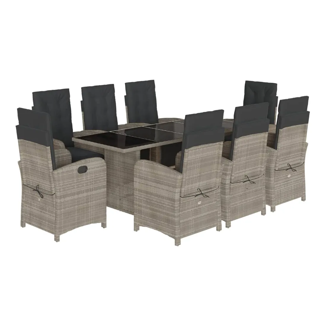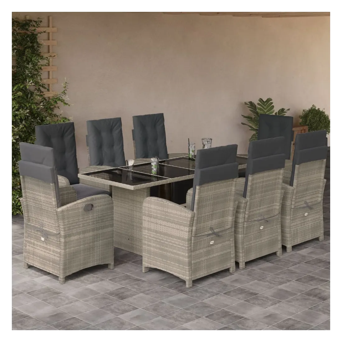 Savourez une tasse de café ou discutez avec votre famille et vos amis dans le jardin, l'arrière-cour ou sur le balcon avec cet ensemble de salle à manger de jardin confortable ! Matériau durable : la résine tressée, également connue sous le nom de poly rotin, est un matériau synthétique solide et nécessitant peu d'entretien qui ressemble au rotin naturel. Il est léger, facile à nettoyer et couramment utilisé pour les meubles d'extérieur en raison de sa durabilité et de ses propriétés de résistance aux intempéries.Dossier et repose-pied réglables : ce siège de jardin est doté d'une poignée. Vous pouvez régler le dossier et le repose-pied dans n'importe quelle position en tirant sur la poignée, et les remettre rapidement dans leur position initiale.Expérience d'assise confortable : ce mobilier d'extérieur, doté de coussins épais, offre une expérience d'assise confortable.Housse amovible et lavable : ces coussins de siège sont dotés de housses amovibles pour un lavage et un entretien faciles. Les coussins de dossier ont un rabat à l'arrière pour une fixation facile aux dossiers.Dessus en verre : le dessus de la table d'extérieur est fabriqué en verre trempé solide et durable, ce qui le rend facile à nettoyer avec un chiffon humide et ajoute une touche d'élégance à votre espace extérieur. Bon à savoir :Pour que vos meubles d'extérieur restent beaux, nous vous recommandons de les protéger avec une housse imperméable.