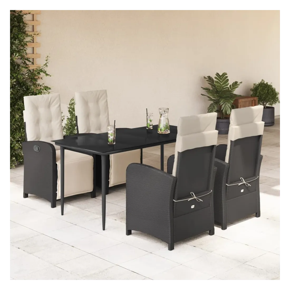 Savourez une tasse de café ou discutez avec votre famille et vos amis dans le jardin, l'arrière-cour ou sur le balcon avec cet ensemble de salle à manger de jardin confortable ! Matériau durable : la résine tressée, également connue sous le nom de poly rotin, est un matériau synthétique solide et nécessitant peu d'entretien qui ressemble au rotin naturel. Il est léger, facile à nettoyer et couramment utilisé pour les meubles d'extérieur en raison de sa durabilité et de ses propriétés de résistance aux intempéries.Dossier et repose-pied réglables : ce siège de jardin est doté d'une poignée. Vous pouvez régler le dossier et le repose-pied dans n'importe quelle position en tirant sur la poignée, et les remettre rapidement dans leur position initiale.Expérience d'assise confortable : ce mobilier d'extérieur, doté de coussins épais, offre une expérience d'assise confortable.Housse amovible et lavable : ces coussins de siège sont dotés de housses amovibles pour un lavage et un entretien faciles. Les coussins de dossier ont un rabat à l'arrière pour une fixation facile aux dossiers.Dessus en verre : le dessus de la table d'extérieur est fabriqué en verre trempé solide et durable, ce qui le rend facile à nettoyer avec un chiffon humide et ajoute une touche d'élégance à votre espace extérieur. Bon à savoir :Pour que vos meubles d'extérieur restent beaux, nous vous recommandons de les protéger avec une housse imperméable.