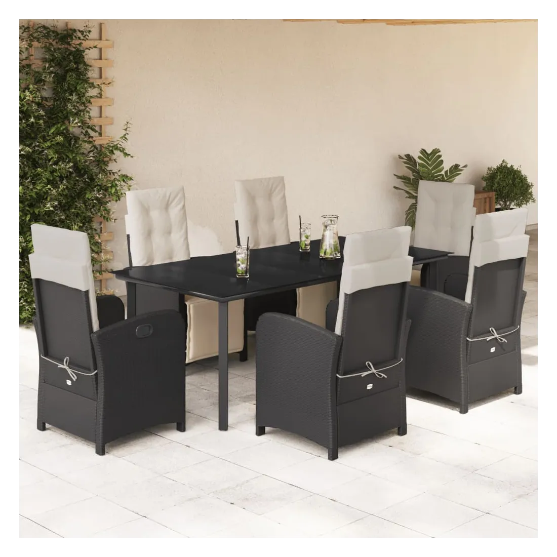 Savourez une tasse de café ou discutez avec votre famille et vos amis dans le jardin, l'arrière-cour ou sur le balcon avec cet ensemble de salle à manger de jardin confortable ! Matériau durable : la résine tressée, également connue sous le nom de poly rotin, est un matériau synthétique solide et nécessitant peu d'entretien qui ressemble au rotin naturel. Il est léger, facile à nettoyer et couramment utilisé pour les meubles d'extérieur en raison de sa durabilité et de ses propriétés de résistance aux intempéries.Dossier et repose-pied réglables : ce siège de jardin est doté d'une poignée. Vous pouvez régler le dossier et le repose-pied dans n'importe quelle position en tirant sur la poignée, et les remettre rapidement dans leur position initiale.Expérience d'assise confortable : ce mobilier d'extérieur, doté de coussins épais, offre une expérience d'assise confortable.Housse amovible et lavable : ces coussins de siège sont dotés de housses amovibles pour un lavage et un entretien faciles. Les coussins de dossier ont un rabat à l'arrière pour une fixation facile aux dossiers.Dessus en verre : le dessus de la table d'extérieur est fabriqué en verre trempé solide et durable, ce qui le rend facile à nettoyer avec un chiffon humide et ajoute une touche d'élégance à votre espace extérieur. Bon à savoir :Pour que vos meubles d'extérieur restent beaux, nous vous recommandons de les protéger avec une housse imperméable.