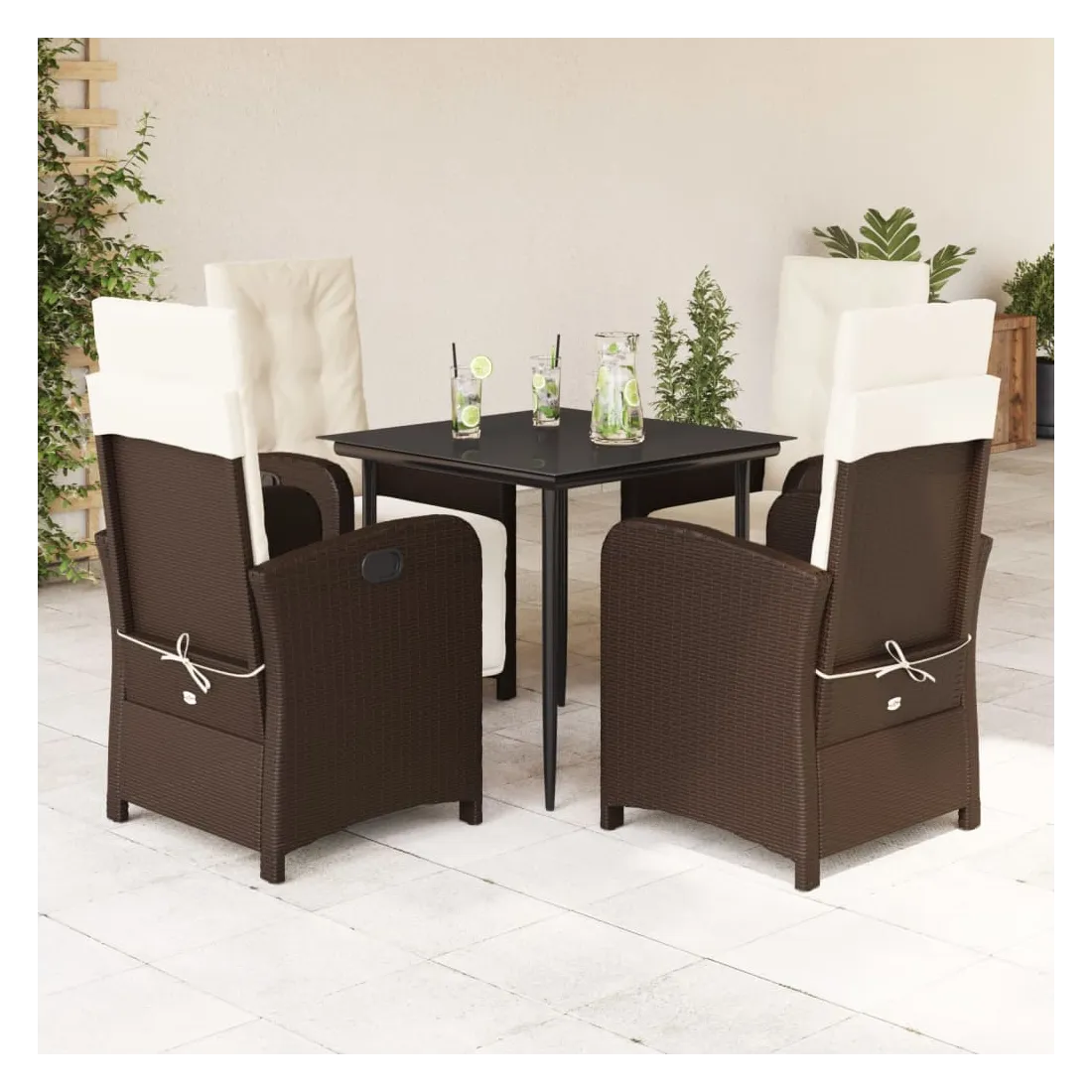 Savourez une tasse de café ou discutez avec votre famille et vos amis dans le jardin, l'arrière-cour ou sur le balcon avec cet ensemble de salle à manger de jardin confortable ! Matériau durable : la résine tressée, également connue sous le nom de poly rotin, est un matériau synthétique solide et nécessitant peu d'entretien qui ressemble au rotin naturel. Il est léger, facile à nettoyer et couramment utilisé pour les meubles d'extérieur en raison de sa durabilité et de ses propriétés de résistance aux intempéries.Dossier et repose-pied réglables : ce siège de jardin est doté d'une poignée. Vous pouvez régler le dossier et le repose-pied dans n'importe quelle position en tirant sur la poignée, et les remettre rapidement dans leur position initiale.Expérience d'assise confortable : ce mobilier d'extérieur, doté de coussins épais, offre une expérience d'assise confortable.Housse amovible et lavable : ces coussins de siège sont dotés de housses amovibles pour un lavage et un entretien faciles. Les coussins de dossier ont un rabat à l'arrière pour une fixation facile aux dossiers.Dessus en verre : le dessus de la table d'extérieur est fabriqué en verre trempé solide et durable, ce qui le rend facile à nettoyer avec un chiffon humide et ajoute une touche d'élégance à votre espace extérieur. Bon à savoir :Pour que vos meubles d'extérieur restent beaux, nous vous recommandons de les protéger avec une housse imperméable.