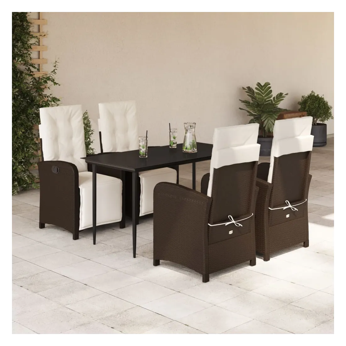 Savourez une tasse de café ou discutez avec votre famille et vos amis dans le jardin, l'arrière-cour ou sur le balcon avec cet ensemble de salle à manger de jardin confortable ! Matériau durable : la résine tressée, également connue sous le nom de poly rotin, est un matériau synthétique solide et nécessitant peu d'entretien qui ressemble au rotin naturel. Il est léger, facile à nettoyer et couramment utilisé pour les meubles d'extérieur en raison de sa durabilité et de ses propriétés de résistance aux intempéries.Dossier et repose-pied réglables : ce siège de jardin est doté d'une poignée. Vous pouvez régler le dossier et le repose-pied dans n'importe quelle position en tirant sur la poignée, et les remettre rapidement dans leur position initiale.Expérience d'assise confortable : ce mobilier d'extérieur, doté de coussins épais, offre une expérience d'assise confortable.Housse amovible et lavable : ces coussins de siège sont dotés de housses amovibles pour un lavage et un entretien faciles. Les coussins de dossier ont un rabat à l'arrière pour une fixation facile aux dossiers.Dessus en verre : le dessus de la table d'extérieur est fabriqué en verre trempé solide et durable, ce qui le rend facile à nettoyer avec un chiffon humide et ajoute une touche d'élégance à votre espace extérieur. Bon à savoir :Pour que vos meubles d'extérieur restent beaux, nous vous recommandons de les protéger avec une housse imperméable.