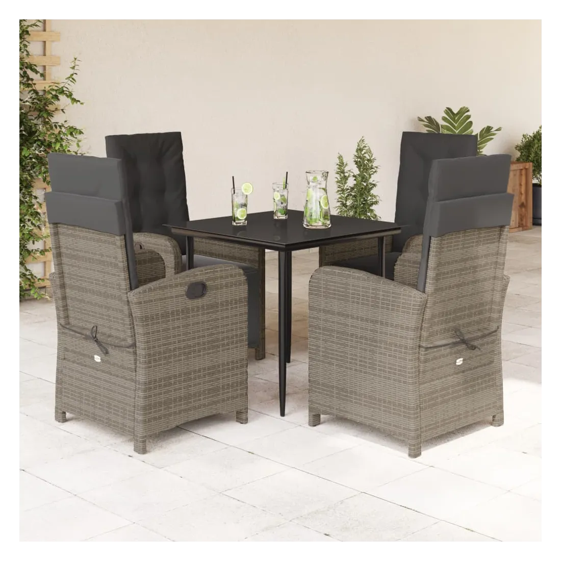 Savourez une tasse de café ou discutez avec votre famille et vos amis dans le jardin, l'arrière-cour ou sur le balcon avec cet ensemble de salle à manger de jardin confortable ! Matériau durable : la résine tressée, également connue sous le nom de poly rotin, est un matériau synthétique solide et nécessitant peu d'entretien qui ressemble au rotin naturel. Il est léger, facile à nettoyer et couramment utilisé pour les meubles d'extérieur en raison de sa durabilité et de ses propriétés de résistance aux intempéries.Dossier et repose-pied réglables : ce siège de jardin est doté d'une poignée. Vous pouvez régler le dossier et le repose-pied dans n'importe quelle position en tirant sur la poignée, et les remettre rapidement dans leur position initiale.Expérience d'assise confortable : ce mobilier d'extérieur, doté de coussins épais, offre une expérience d'assise confortable.Housse amovible et lavable : ces coussins de siège sont dotés de housses amovibles pour un lavage et un entretien faciles. Les coussins de dossier ont un rabat à l'arrière pour une fixation facile aux dossiers.Dessus en verre : le dessus de la table d'extérieur est fabriqué en verre trempé solide et durable, ce qui le rend facile à nettoyer avec un chiffon humide et ajoute une touche d'élégance à votre espace extérieur. Bon à savoir :Pour que vos meubles d'extérieur restent beaux, nous vous recommandons de les protéger avec une housse imperméable.