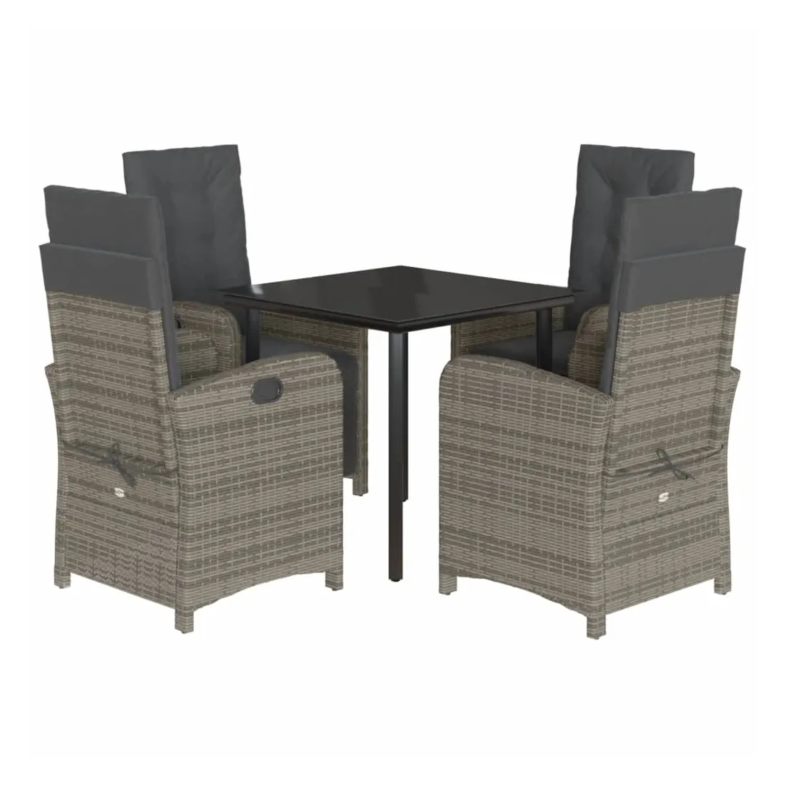 Savourez une tasse de café ou discutez avec votre famille et vos amis dans le jardin, l'arrière-cour ou sur le balcon avec cet ensemble de salle à manger de jardin confortable ! Matériau durable : la résine tressée, également connue sous le nom de poly rotin, est un matériau synthétique solide et nécessitant peu d'entretien qui ressemble au rotin naturel. Il est léger, facile à nettoyer et couramment utilisé pour les meubles d'extérieur en raison de sa durabilité et de ses propriétés de résistance aux intempéries.Dossier et repose-pied réglables : ce siège de jardin est doté d'une poignée. Vous pouvez régler le dossier et le repose-pied dans n'importe quelle position en tirant sur la poignée, et les remettre rapidement dans leur position initiale.Expérience d'assise confortable : ce mobilier d'extérieur, doté de coussins épais, offre une expérience d'assise confortable.Housse amovible et lavable : ces coussins de siège sont dotés de housses amovibles pour un lavage et un entretien faciles. Les coussins de dossier ont un rabat à l'arrière pour une fixation facile aux dossiers.Dessus en verre : le dessus de la table d'extérieur est fabriqué en verre trempé solide et durable, ce qui le rend facile à nettoyer avec un chiffon humide et ajoute une touche d'élégance à votre espace extérieur. Bon à savoir :Pour que vos meubles d'extérieur restent beaux, nous vous recommandons de les protéger avec une housse imperméable.