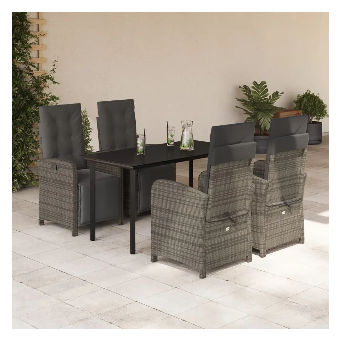 Ensemble à manger de jardin 5 pcs coussins gris résine tressée