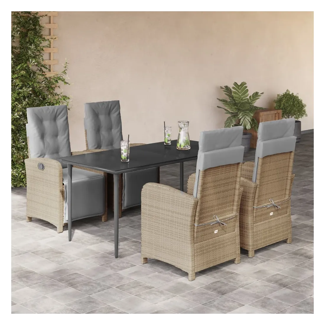 Savourez une tasse de café ou discutez avec votre famille et vos amis dans le jardin, l'arrière-cour ou sur le balcon avec cet ensemble de salle à manger de jardin confortable ! Matériau durable : la résine tressée, également connue sous le nom de poly rotin, est un matériau synthétique solide et nécessitant peu d'entretien qui ressemble au rotin naturel. Il est léger, facile à nettoyer et couramment utilisé pour les meubles d'extérieur en raison de sa durabilité et de ses propriétés de résistance aux intempéries.Dossier et repose-pied réglables : ce siège de jardin est doté d'une poignée. Vous pouvez régler le dossier et le repose-pied dans n'importe quelle position en tirant sur la poignée, et les remettre rapidement dans leur position initiale.Expérience d'assise confortable : ce mobilier d'extérieur, doté de coussins épais, offre une expérience d'assise confortable.Housse amovible et lavable : ces coussins de siège sont dotés de housses amovibles pour un lavage et un entretien faciles. Les coussins de dossier ont un rabat à l'arrière pour une fixation facile aux dossiers.Dessus en verre : le dessus de la table d'extérieur est fabriqué en verre trempé solide et durable, ce qui le rend facile à nettoyer avec un chiffon humide et ajoute une touche d'élégance à votre espace extérieur. Bon à savoir :Pour que vos meubles d'extérieur restent beaux, nous vous recommandons de les protéger avec une housse imperméable.