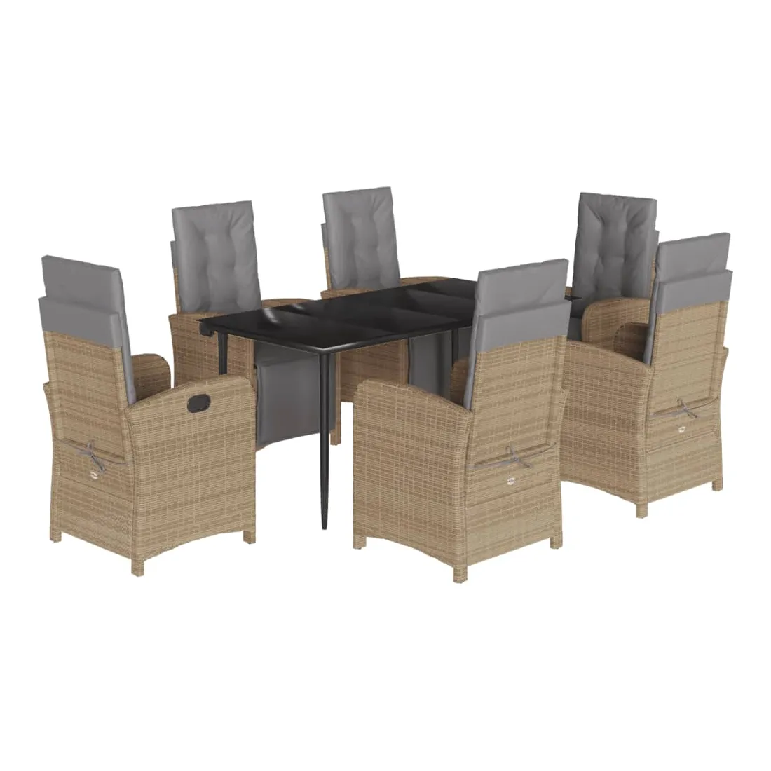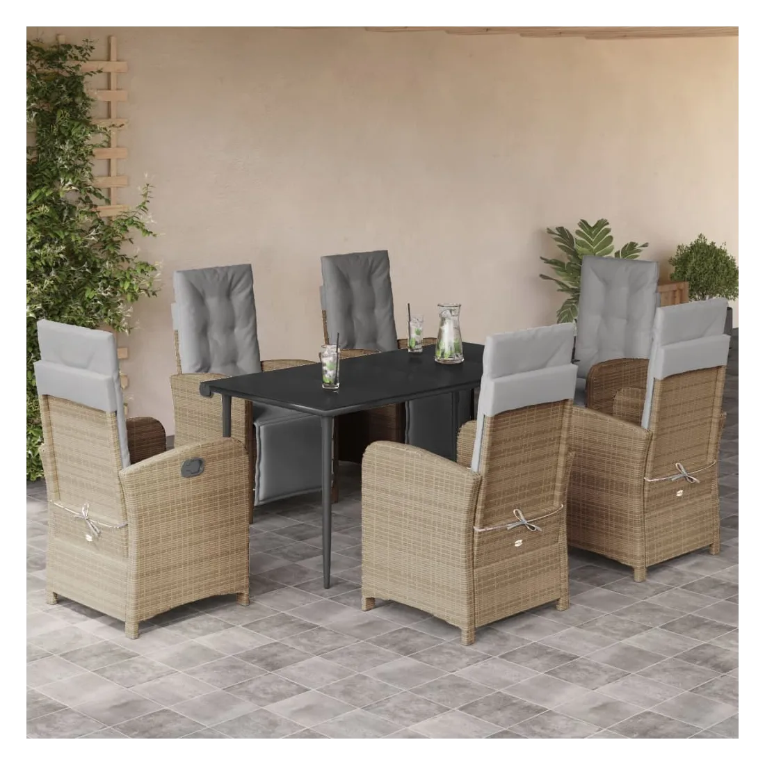 Savourez une tasse de café ou discutez avec votre famille et vos amis dans le jardin, l'arrière-cour ou sur le balcon avec cet ensemble de salle à manger de jardin confortable ! Matériau durable : la résine tressée, également connue sous le nom de poly rotin, est un matériau synthétique solide et nécessitant peu d'entretien qui ressemble au rotin naturel. Il est léger, facile à nettoyer et couramment utilisé pour les meubles d'extérieur en raison de sa durabilité et de ses propriétés de résistance aux intempéries.Dossier et repose-pied réglables : ce siège de jardin est doté d'une poignée. Vous pouvez régler le dossier et le repose-pied dans n'importe quelle position en tirant sur la poignée, et les remettre rapidement dans leur position initiale.Expérience d'assise confortable : ce mobilier d'extérieur, doté de coussins épais, offre une expérience d'assise confortable.Housse amovible et lavable : ces coussins de siège sont dotés de housses amovibles pour un lavage et un entretien faciles. Les coussins de dossier ont un rabat à l'arrière pour une fixation facile aux dossiers.Dessus en verre : le dessus de la table d'extérieur est fabriqué en verre trempé solide et durable, ce qui le rend facile à nettoyer avec un chiffon humide et ajoute une touche d'élégance à votre espace extérieur. Bon à savoir :Pour que vos meubles d'extérieur restent beaux, nous vous recommandons de les protéger avec une housse imperméable.