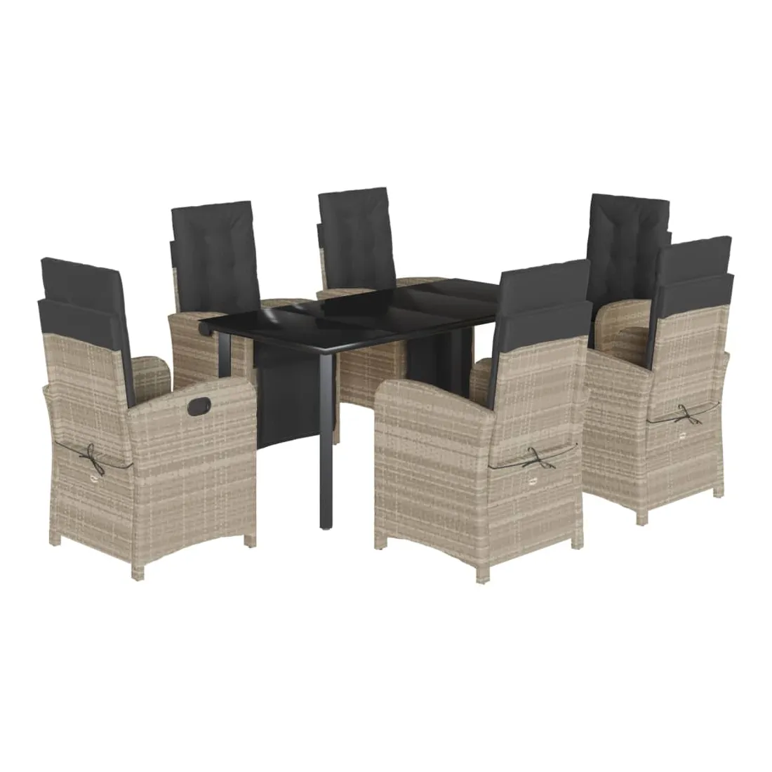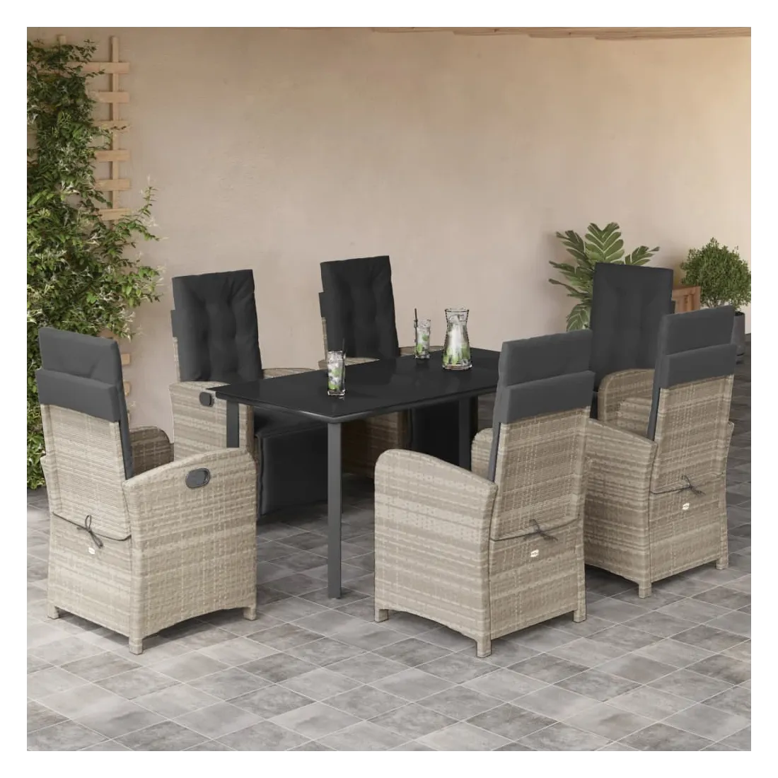 Savourez une tasse de café ou discutez avec votre famille et vos amis dans le jardin, l'arrière-cour ou sur le balcon avec cet ensemble de salle à manger de jardin confortable ! Matériau durable : la résine tressée, également connue sous le nom de poly rotin, est un matériau synthétique solide et nécessitant peu d'entretien qui ressemble au rotin naturel. Il est léger, facile à nettoyer et couramment utilisé pour les meubles d'extérieur en raison de sa durabilité et de ses propriétés de résistance aux intempéries.Dossier et repose-pied réglables : ce siège de jardin est doté d'une poignée. Vous pouvez régler le dossier et le repose-pied dans n'importe quelle position en tirant sur la poignée, et les remettre rapidement dans leur position initiale.Expérience d'assise confortable : ce mobilier d'extérieur, doté de coussins épais, offre une expérience d'assise confortable.Housse amovible et lavable : ces coussins de siège sont dotés de housses amovibles pour un lavage et un entretien faciles. Les coussins de dossier ont un rabat à l'arrière pour une fixation facile aux dossiers.Dessus en verre : le dessus de la table d'extérieur est fabriqué en verre trempé solide et durable, ce qui le rend facile à nettoyer avec un chiffon humide et ajoute une touche d'élégance à votre espace extérieur. Bon à savoir :Pour que vos meubles d'extérieur restent beaux, nous vous recommandons de les protéger avec une housse imperméable.