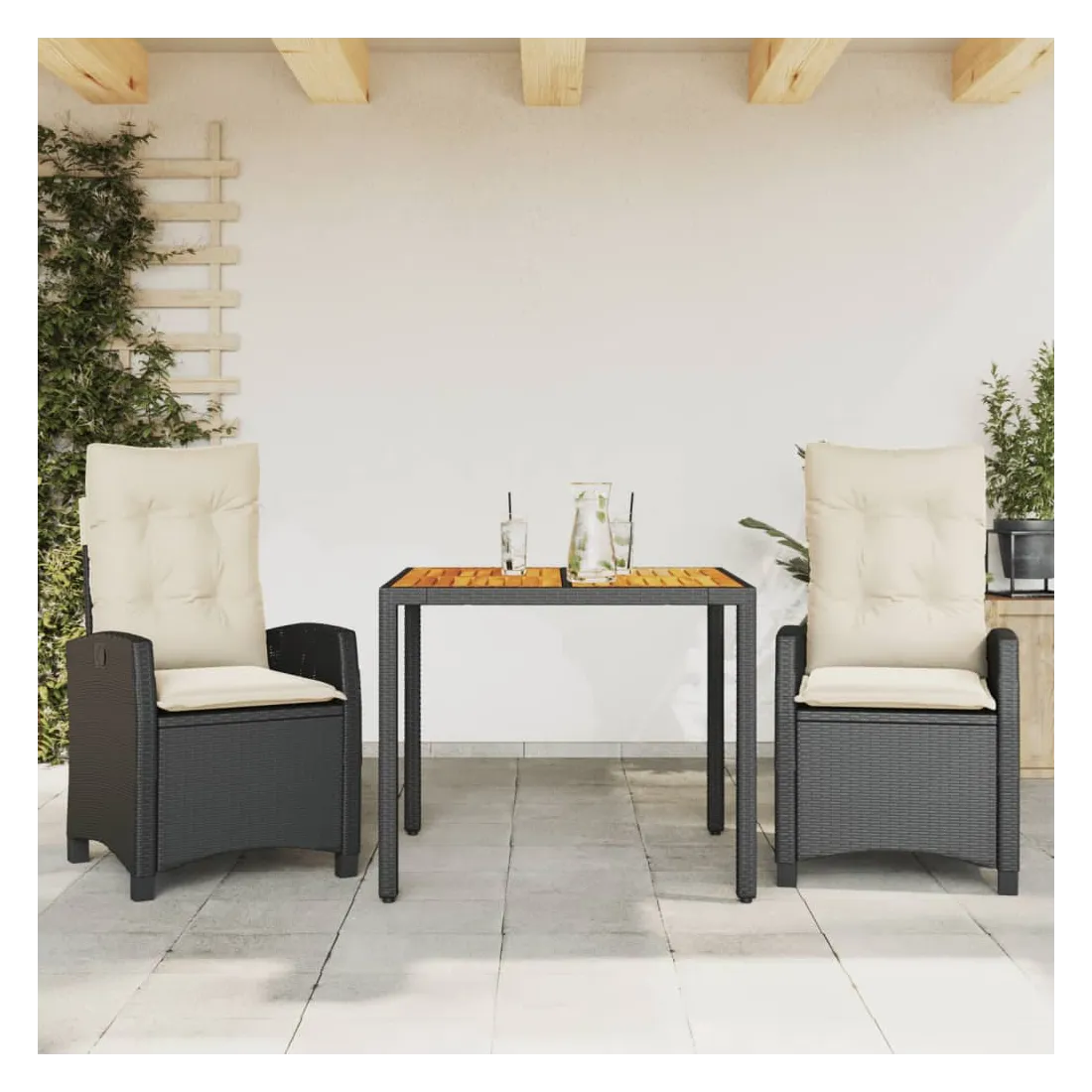 Cet ensemble de salle à manger de jardin est un excellent choix pour les repas en plein air ou pour vous détendre dans le jardin, l'arrière-cour ou le patio. Matériau durable : la résine tressée, également connue sous le nom de poly rotin, est un matériau synthétique solide et nécessitant peu d'entretien qui ressemble au rotin naturel. Il est léger, facile à nettoyer et couramment utilisé pour les meubles d'extérieur en raison de sa durabilité et de ses propriétés de résistance aux intempéries. Dossier réglable : ce siège de jardin est doté d'une poignée. Vous pouvez régler le dossier dans n'importe quelle position en tirant sur la poignée et le remettre rapidement dans sa position initiale.Dessus stable et facile à nettoyer : cette table de jardin a un dessus en bois d'acacia robuste, durable et facile à nettoyer avec un chiffon humide. Expérience d'assise confortable : ce mobilier d'extérieur, doté de coussins épais, offre une expérience d'assise confortable. Housse amovible et lavable : ces coussins de siège sont dotés de housses amovibles pour un lavage et un entretien faciles. Bon à savoir :Pour que vos meubles d'extérieur restent beaux, nous vous recommandons de les protéger avec une housse imperméable.