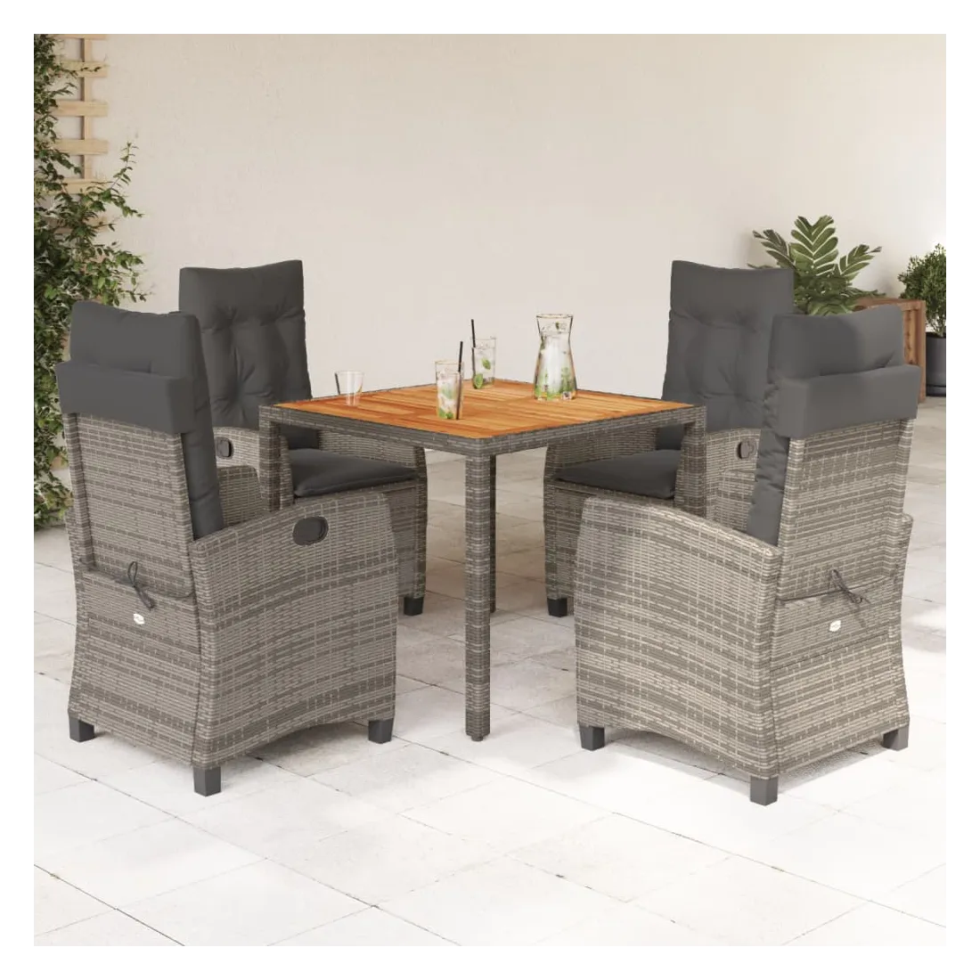 vidaXLCet ensemble de salle à manger de jardin est un excellent choix pour les repas en plein air ou pour vous détendre dans le jardin, l'arrière-cour ou le patio. Matériau durable : la résine tressée, également connue sous le nom de poly rotin, est un matériau synthétique solide et nécessitant peu d'entretien qui ressemble au rotin naturel. Il est léger, facile à nettoyer et couramment utilisé pour les meubles d'extérieur en raison de sa durabilité et de ses propriétés de résistance aux intempéries. Dossier réglable : ce siège de jardin est doté d'une poignée. Vous pouvez régler le dossier dans n'importe quelle position en tirant sur la poignée et le remettre rapidement dans sa position initiale.Dessus stable et facile à nettoyer : cette table de jardin a un dessus en bois d'acacia robuste, durable et facile à nettoyer avec un chiffon humide. Expérience d'assise confortable : ce mobilier d'extérieur, doté de coussins épais, offre une expérience d'assise confortable. Housse amovible et lavable : ces coussins de siège sont dotés de housses amovibles pour un lavage et un entretien faciles. Bon à savoir :Pour que vos meubles d'extérieur restent beaux, nous vous recommandons de les protéger avec une housse imperméable.