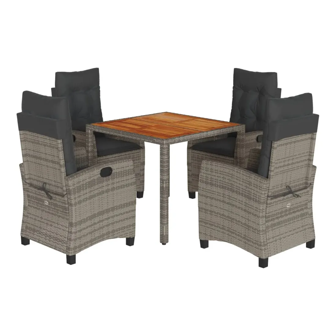 Ensemble à manger de jardin 5 pcs coussins gris résine tressée