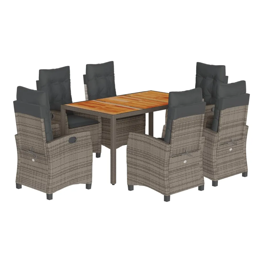 Cet ensemble de salle à manger de jardin est un excellent choix pour les repas en plein air ou pour vous détendre dans le jardin, l'arrière-cour ou le patio. Matériau durable : la résine tressée, également connue sous le nom de poly rotin, est un matériau synthétique solide et nécessitant peu d'entretien qui ressemble au rotin naturel. Il est léger, facile à nettoyer et couramment utilisé pour les meubles d'extérieur en raison de sa durabilité et de ses propriétés de résistance aux intempéries. Dossier réglable : ce siège de jardin est doté d'une poignée. Vous pouvez régler le dossier dans n'importe quelle position en tirant sur la poignée et le remettre rapidement dans sa position initiale.Dessus stable et facile à nettoyer : cette table de jardin a un dessus en bois d'acacia robuste, durable et facile à nettoyer avec un chiffon humide. Expérience d'assise confortable : ce mobilier d'extérieur, doté de coussins épais, offre une expérience d'assise confortable. Housse amovible et lavable : ces coussins de siège sont dotés de housses amovibles pour un lavage et un entretien faciles. Bon à savoir :Pour que vos meubles d'extérieur restent beaux, nous vous recommandons de les protéger avec une housse imperméable.