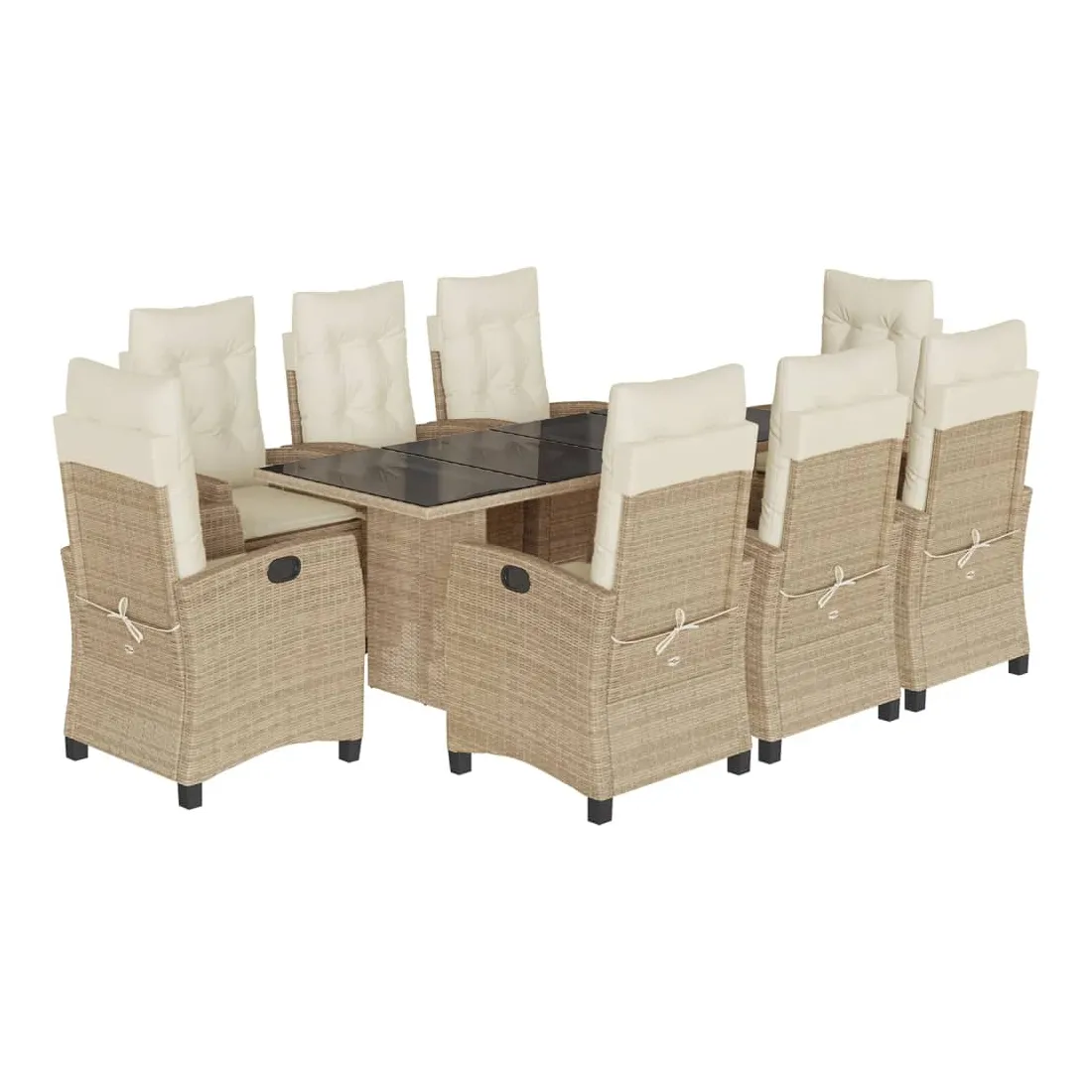 Cet ensemble de salle à manger de jardin est un excellent choix pour les repas en plein air ou pour vous détendre dans le jardin, l'arrière-cour ou le patio. Matériau durable : la résine tressée, également connue sous le nom de poly rotin, est un matériau synthétique solide et nécessitant peu d'entretien qui ressemble au rotin naturel. Il est léger, facile à nettoyer et couramment utilisé pour les meubles d'extérieur en raison de sa durabilité et de ses propriétés de résistance aux intempéries. Dossier réglable : ce siège de jardin est doté d'une poignée. Vous pouvez régler le dossier dans n'importe quelle position en tirant sur la poignée et le remettre rapidement dans sa position initiale.Dessus en verre : le dessus de la table d'extérieur est fabriqué en verre trempé solide et durable, ce qui le rend facile à nettoyer avec un chiffon humide et ajoute une touche d'élégance à votre espace extérieur. Expérience d'assise confortable : ce mobilier d'extérieur, doté de coussins épais, offre une expérience d'assise confortable. Housse amovible et lavable : ces coussins de siège sont dotés de housses amovibles pour un lavage et un entretien faciles. Bon à savoir :Pour que vos meubles d'extérieur restent beaux, nous vous recommandons de les protéger avec une housse imperméable.