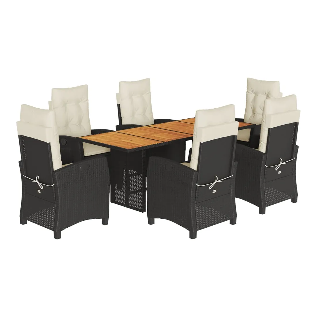 Cet ensemble de salle à manger de jardin est un excellent choix pour les repas en plein air ou pour vous détendre dans le jardin, l'arrière-cour ou le patio. Matériau durable : la résine tressée, également connue sous le nom de poly rotin, est un matériau synthétique solide et nécessitant peu d'entretien qui ressemble au rotin naturel. Il est léger, facile à nettoyer et couramment utilisé pour les meubles d'extérieur en raison de sa durabilité et de ses propriétés de résistance aux intempéries. Dossier réglable : ce siège de jardin est doté d'une poignée. Vous pouvez régler le dossier dans n'importe quelle position en tirant sur la poignée et le remettre rapidement dans sa position initiale.Dessus stable et facile à nettoyer : cette table de jardin a un dessus en bois d'acacia robuste, durable et facile à nettoyer avec un chiffon humide. Expérience d'assise confortable : ce mobilier d'extérieur, doté de coussins épais, offre une expérience d'assise confortable. Housse amovible et lavable : ces coussins de siège sont dotés de housses amovibles pour un lavage et un entretien faciles. Bon à savoir :Pour que vos meubles d'extérieur restent beaux, nous vous recommandons de les protéger avec une housse imperméable.