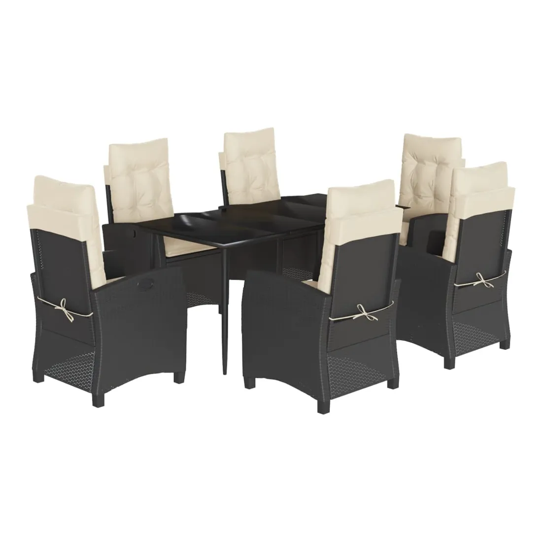Cet ensemble de salle à manger de jardin est un excellent choix pour les repas en plein air ou pour vous détendre dans le jardin, l'arrière-cour ou le patio. Matériau durable : la résine tressée, également connue sous le nom de poly rotin, est un matériau synthétique solide et nécessitant peu d'entretien qui ressemble au rotin naturel. Il est léger, facile à nettoyer et couramment utilisé pour les meubles d'extérieur en raison de sa durabilité et de ses propriétés de résistance aux intempéries. Dossier réglable : ce siège de jardin est doté d'une poignée. Vous pouvez régler le dossier dans n'importe quelle position en tirant sur la poignée et le remettre rapidement dans sa position initiale.Dessus en verre : le dessus de la table d'extérieur est fabriqué en verre trempé solide et durable, ce qui le rend facile à nettoyer avec un chiffon humide et ajoute une touche d'élégance à votre espace extérieur. Expérience d'assise confortable : ce mobilier d'extérieur, doté de coussins épais, offre une expérience d'assise confortable. Housse amovible et lavable : ces coussins de siège sont dotés de housses amovibles pour un lavage et un entretien faciles. Bon à savoir :Pour que vos meubles d'extérieur restent beaux, nous vous recommandons de les protéger avec une housse imperméable.