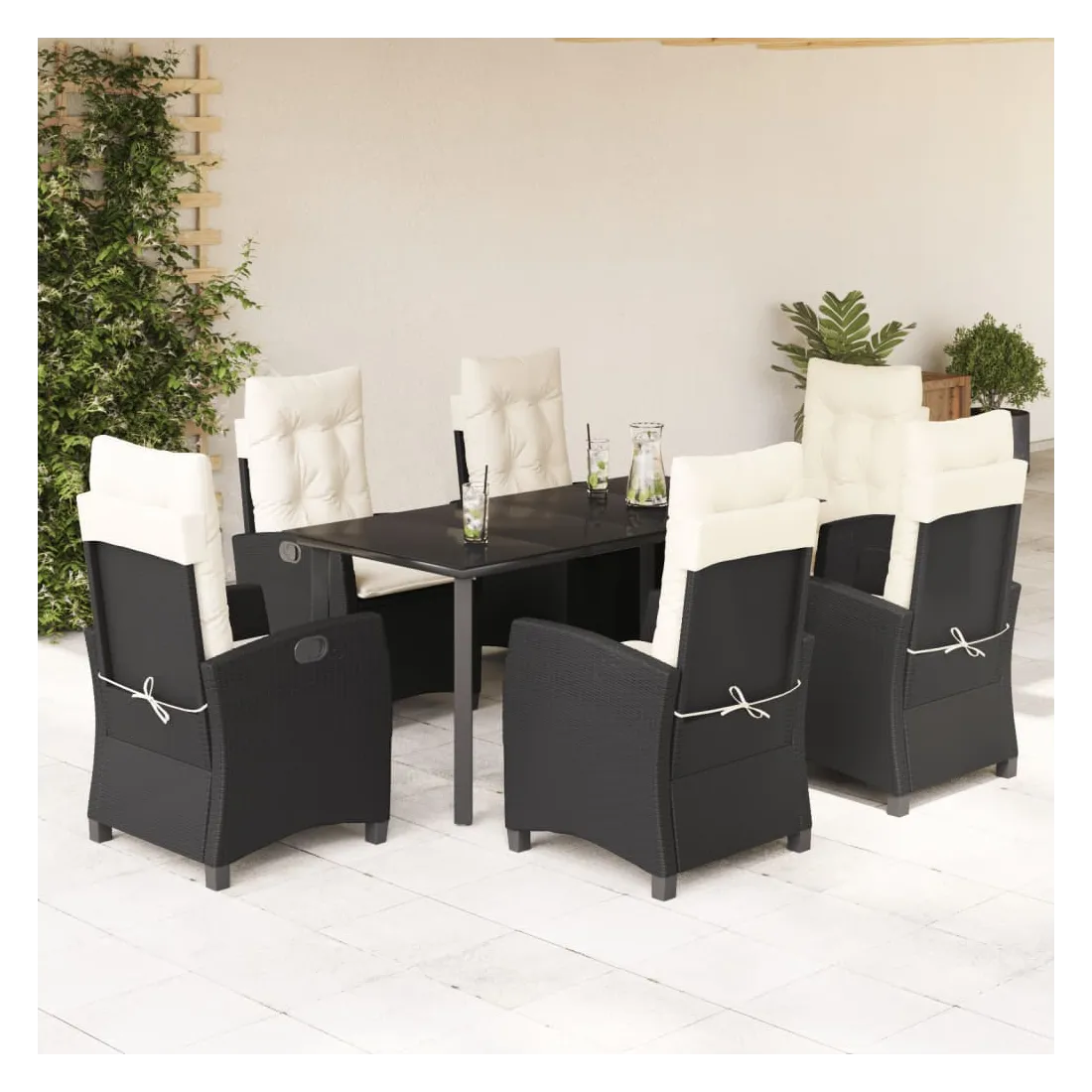 Cet ensemble de salle à manger de jardin est un excellent choix pour les repas en plein air ou pour vous détendre dans le jardin, l'arrière-cour ou le patio. Matériau durable : la résine tressée, également connue sous le nom de poly rotin, est un matériau synthétique solide et nécessitant peu d'entretien qui ressemble au rotin naturel. Il est léger, facile à nettoyer et couramment utilisé pour les meubles d'extérieur en raison de sa durabilité et de ses propriétés de résistance aux intempéries. Dossier réglable : ce siège de jardin est doté d'une poignée. Vous pouvez régler le dossier dans n'importe quelle position en tirant sur la poignée et le remettre rapidement dans sa position initiale.Dessus en verre : le dessus de la table d'extérieur est fabriqué en verre trempé solide et durable, ce qui le rend facile à nettoyer avec un chiffon humide et ajoute une touche d'élégance à votre espace extérieur. Expérience d'assise confortable : ce mobilier d'extérieur, doté de coussins épais, offre une expérience d'assise confortable. Housse amovible et lavable : ces coussins de siège sont dotés de housses amovibles pour un lavage et un entretien faciles. Bon à savoir :Pour que vos meubles d'extérieur restent beaux, nous vous recommandons de les protéger avec une housse imperméable.