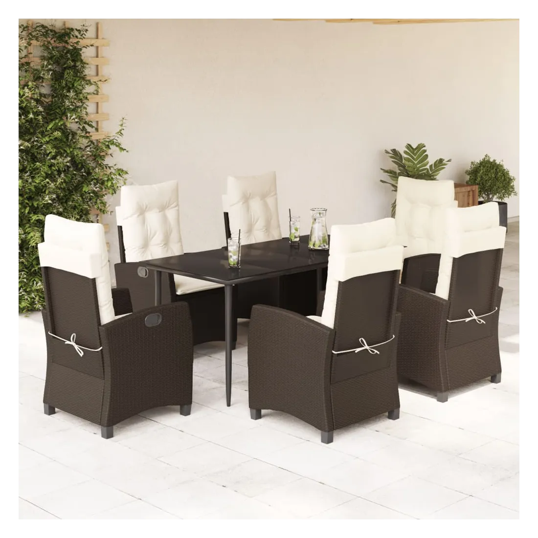 Cet ensemble de salle à manger de jardin est un excellent choix pour les repas en plein air ou pour vous détendre dans le jardin, l'arrière-cour ou le patio. Matériau durable : la résine tressée, également connue sous le nom de poly rotin, est un matériau synthétique solide et nécessitant peu d'entretien qui ressemble au rotin naturel. Il est léger, facile à nettoyer et couramment utilisé pour les meubles d'extérieur en raison de sa durabilité et de ses propriétés de résistance aux intempéries. Dossier réglable : ce siège de jardin est doté d'une poignée. Vous pouvez régler le dossier dans n'importe quelle position en tirant sur la poignée et le remettre rapidement dans sa position initiale.Dessus en verre : le dessus de la table d'extérieur est fabriqué en verre trempé solide et durable, ce qui le rend facile à nettoyer avec un chiffon humide et ajoute une touche d'élégance à votre espace extérieur. Expérience d'assise confortable : ce mobilier d'extérieur, doté de coussins épais, offre une expérience d'assise confortable. Housse amovible et lavable : ces coussins de siège sont dotés de housses amovibles pour un lavage et un entretien faciles. Bon à savoir :Pour que vos meubles d'extérieur restent beaux, nous vous recommandons de les protéger avec une housse imperméable.