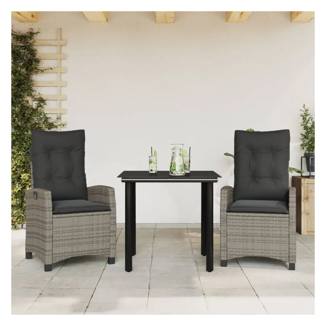 Cet ensemble de salle à manger de jardin est un excellent choix pour les repas en plein air ou pour vous détendre dans le jardin, l'arrière-cour ou le patio. Matériau durable : la résine tressée, également connue sous le nom de poly rotin, est un matériau synthétique solide et nécessitant peu d'entretien qui ressemble au rotin naturel. Il est léger, facile à nettoyer et couramment utilisé pour les meubles d'extérieur en raison de sa durabilité et de ses propriétés de résistance aux intempéries. Dossier réglable : ce siège de jardin est doté d'une poignée. Vous pouvez régler le dossier dans n'importe quelle position en tirant sur la poignée et le remettre rapidement dans sa position initiale.Dessus en verre : le dessus de la table d'extérieur est fabriqué en verre trempé solide et durable, ce qui le rend facile à nettoyer avec un chiffon humide et ajoute une touche d'élégance à votre espace extérieur. Expérience d'assise confortable : ce mobilier d'extérieur, doté de coussins épais, offre une expérience d'assise confortable. Housse amovible et lavable : ces coussins de siège sont dotés de housses amovibles pour un lavage et un entretien faciles. Bon à savoir :Pour que vos meubles d'extérieur restent beaux, nous vous recommandons de les protéger avec une housse imperméable.