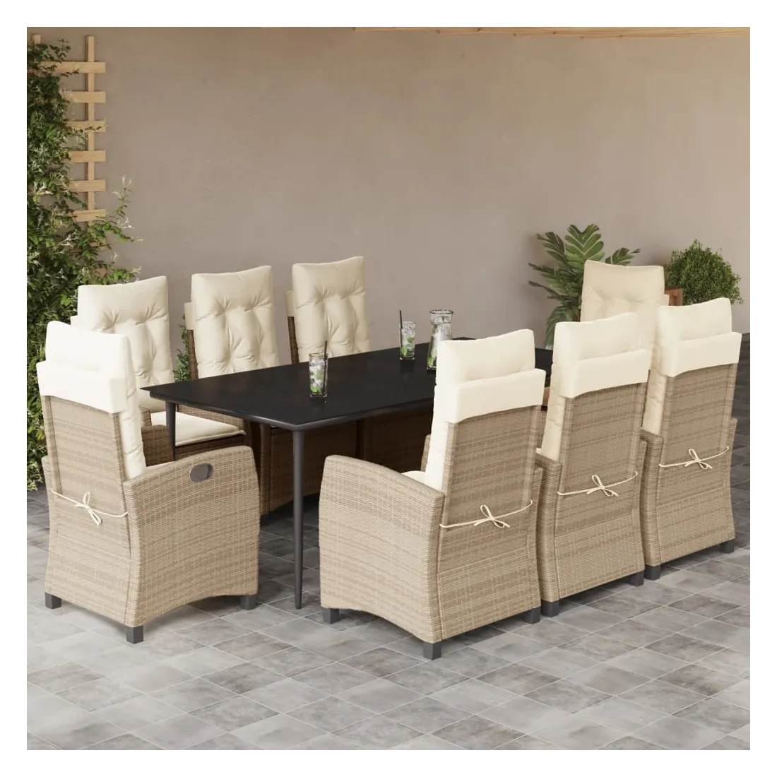 Cet ensemble de salle à manger de jardin est un excellent choix pour les repas en plein air ou pour vous détendre dans le jardin, l'arrière-cour ou le patio. Matériau durable : la résine tressée, également connue sous le nom de poly rotin, est un matériau synthétique solide et nécessitant peu d'entretien qui ressemble au rotin naturel. Il est léger, facile à nettoyer et couramment utilisé pour les meubles d'extérieur en raison de sa durabilité et de ses propriétés de résistance aux intempéries. Dossier réglable : ce siège de jardin est doté d'une poignée. Vous pouvez régler le dossier dans n'importe quelle position en tirant sur la poignée et le remettre rapidement dans sa position initiale.Dessus en verre : le dessus de la table d'extérieur est fabriqué en verre trempé solide et durable, ce qui le rend facile à nettoyer avec un chiffon humide et ajoute une touche d'élégance à votre espace extérieur. Expérience d'assise confortable : ce mobilier d'extérieur, doté de coussins épais, offre une expérience d'assise confortable. Housse amovible et lavable : ces coussins de siège sont dotés de housses amovibles pour un lavage et un entretien faciles. Bon à savoir :Pour que vos meubles d'extérieur restent beaux, nous vous recommandons de les protéger avec une housse imperméable.