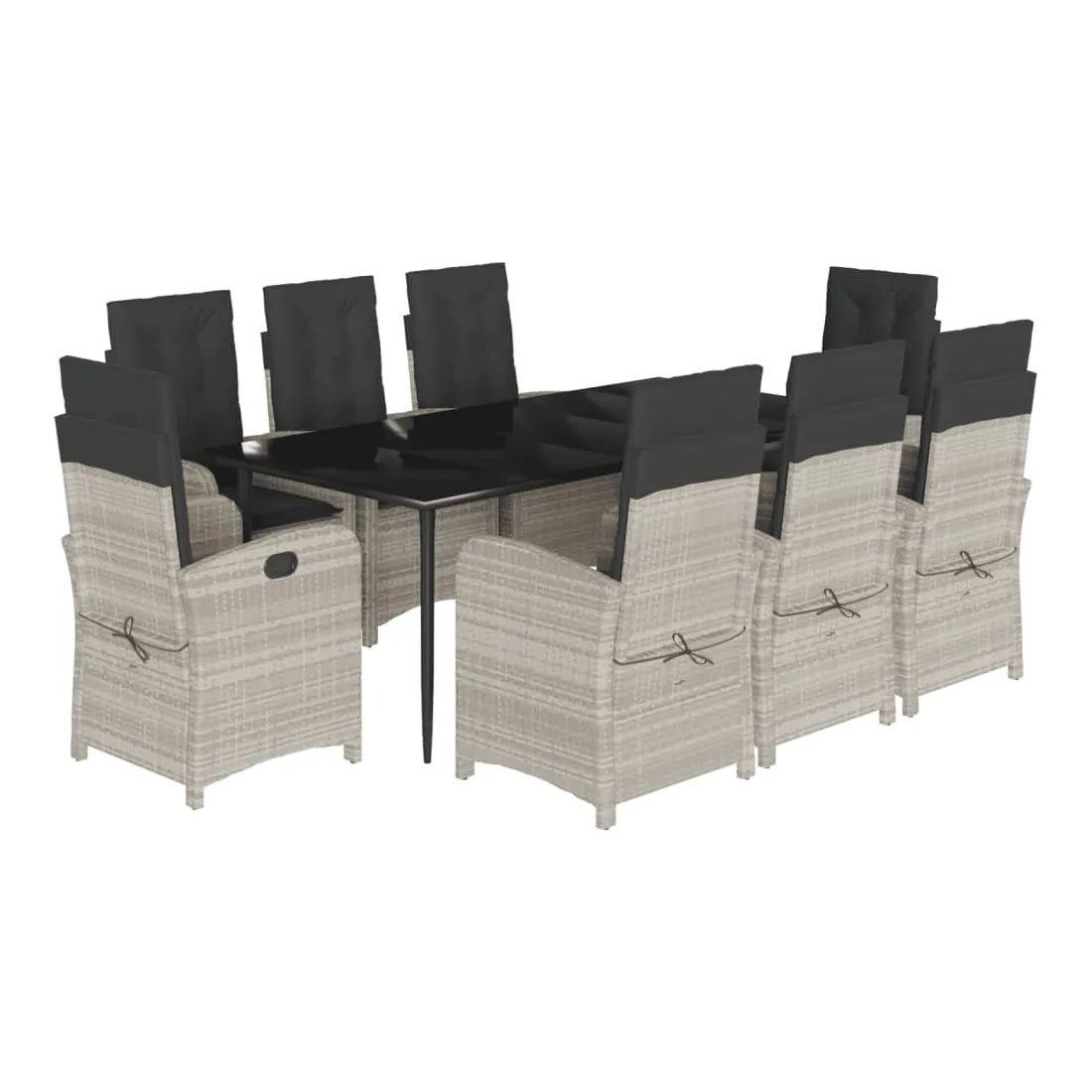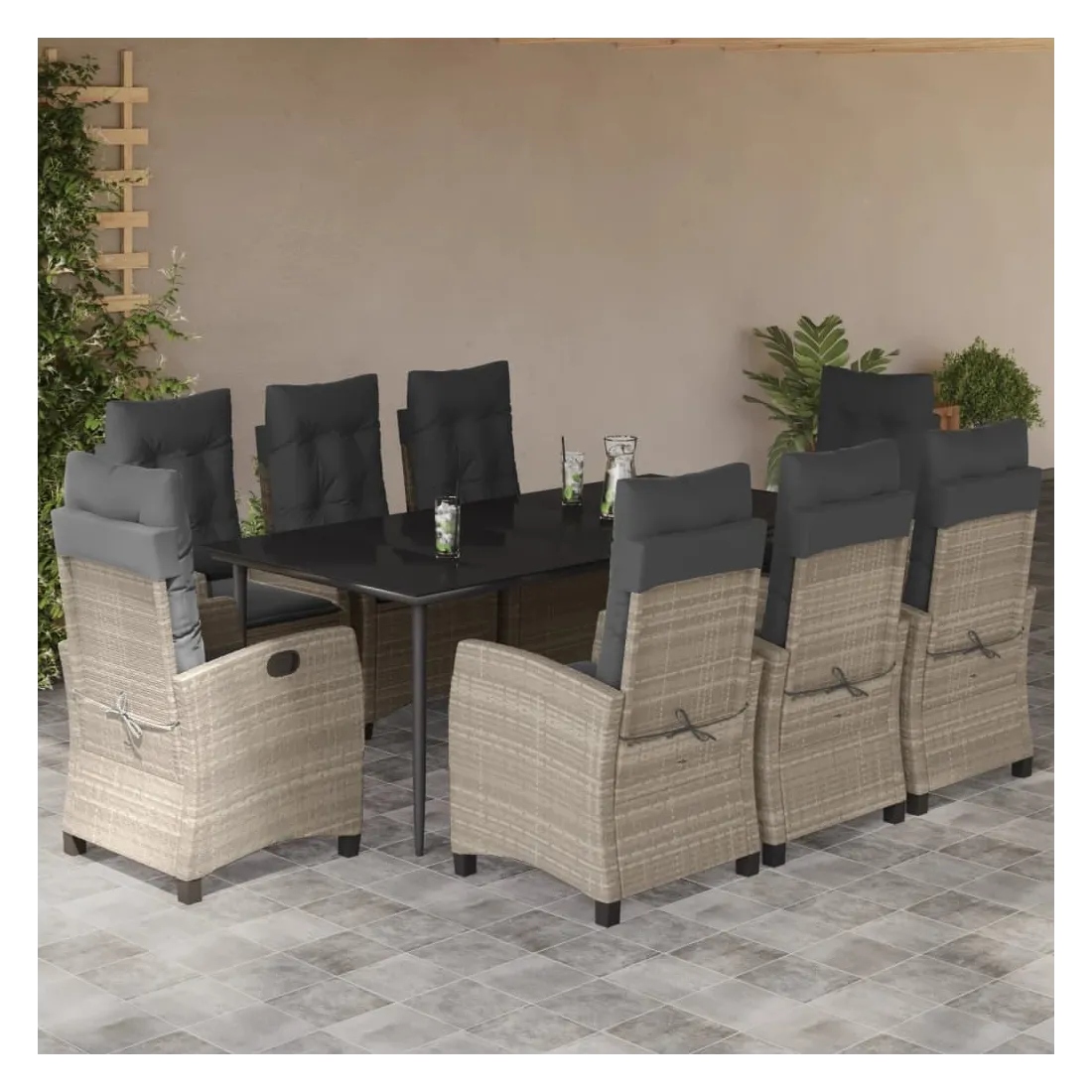 Cet ensemble de salle à manger de jardin est un excellent choix pour les repas en plein air ou pour vous détendre dans le jardin, l'arrière-cour ou le patio. Matériau durable : la résine tressée, également connue sous le nom de poly rotin, est un matériau synthétique solide et nécessitant peu d'entretien qui ressemble au rotin naturel. Il est léger, facile à nettoyer et couramment utilisé pour les meubles d'extérieur en raison de sa durabilité et de ses propriétés de résistance aux intempéries. Dossier réglable : ce siège de jardin est doté d'une poignée. Vous pouvez régler le dossier dans n'importe quelle position en tirant sur la poignée et le remettre rapidement dans sa position initiale.Dessus en verre : le dessus de la table d'extérieur est fabriqué en verre trempé solide et durable, ce qui le rend facile à nettoyer avec un chiffon humide et ajoute une touche d'élégance à votre espace extérieur. Expérience d'assise confortable : ce mobilier d'extérieur, doté de coussins épais, offre une expérience d'assise confortable. Housse amovible et lavable : ces coussins de siège sont dotés de housses amovibles pour un lavage et un entretien faciles. Bon à savoir :Pour que vos meubles d'extérieur restent beaux, nous vous recommandons de les protéger avec une housse imperméable.