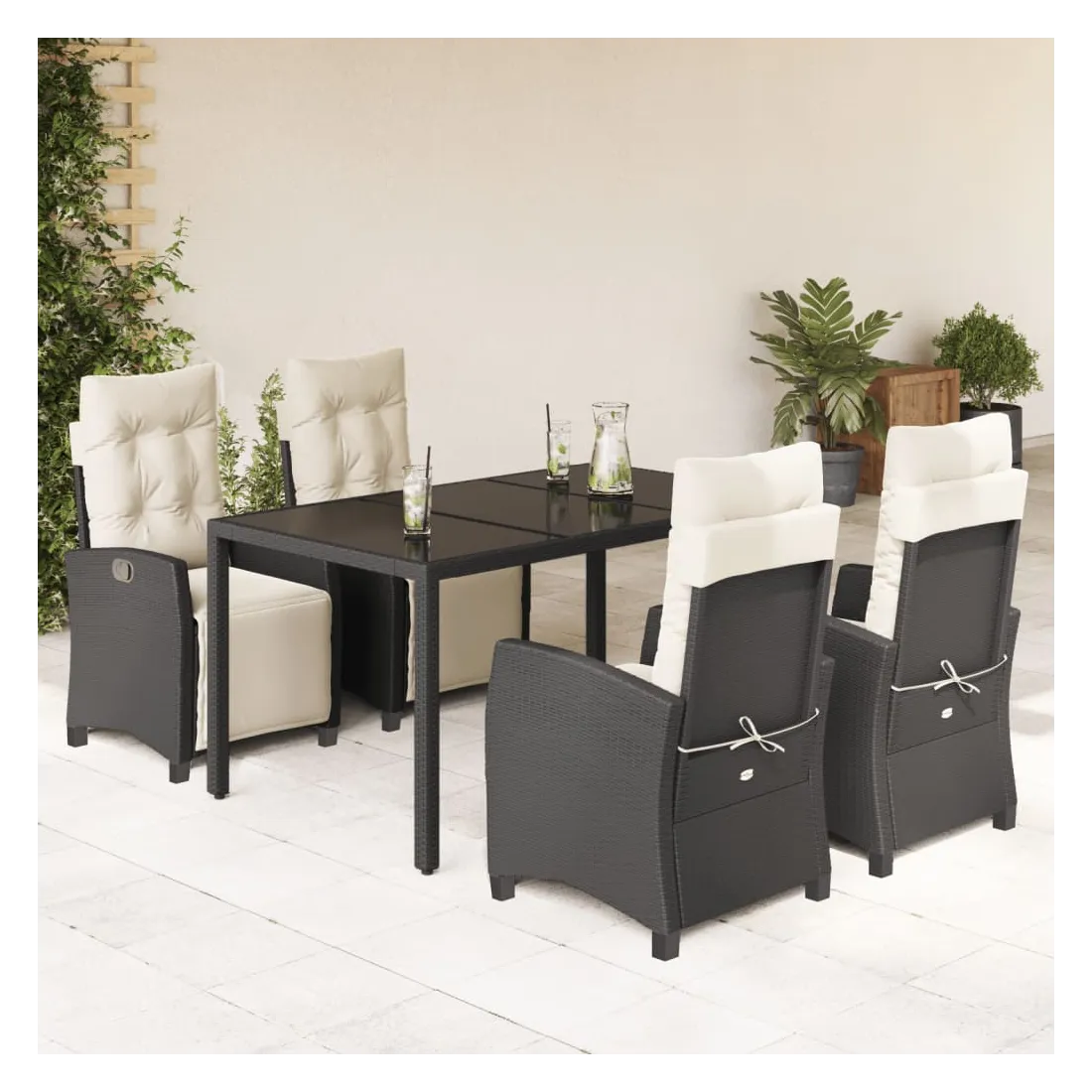 Cet ensemble de salle à manger de jardin est un excellent choix pour les repas en plein air ou pour vous détendre dans le jardin, l'arrière-cour ou le patio. Matériau durable : la résine tressée, également connue sous le nom de poly rotin, est un matériau synthétique solide et nécessitant peu d'entretien qui ressemble au rotin naturel. Il est léger, facile à nettoyer et couramment utilisé pour les meubles d'extérieur en raison de sa durabilité et de ses propriétés de résistance aux intempéries.Dossier et repose-pied réglables : ce siège de jardin est doté d'une poignée. Vous pouvez régler le dossier et le repose-pied dans n'importe quelle position en tirant sur la poignée, et les remettre rapidement dans leur position initiale.Dessus en verre : le dessus de la table d'extérieur est fabriqué en verre trempé solide et durable, ce qui le rend facile à nettoyer avec un chiffon humide et ajoute une touche d'élégance à votre espace extérieur.Expérience d'assise confortable : ce mobilier d'extérieur, doté de coussins épais, offre une expérience d'assise confortable.Housse amovible et lavable : ces coussins de siège sont dotés de housses amovibles pour un lavage et un entretien faciles. Bon à savoir :Pour que vos meubles d'extérieur restent beaux, nous vous recommandons de les protéger avec une housse imperméable.