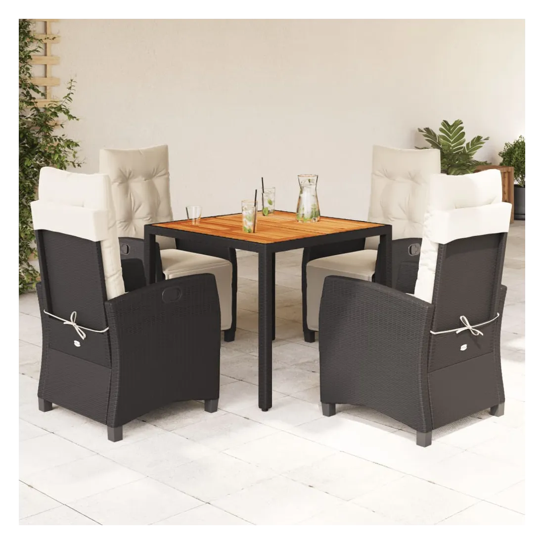 Cet ensemble de salle à manger de jardin est un excellent choix pour les repas en plein air ou pour vous détendre dans le jardin, l'arrière-cour ou le patio. Matériau durable : la résine tressée, également connue sous le nom de poly rotin, est un matériau synthétique solide et nécessitant peu d'entretien qui ressemble au rotin naturel. Il est léger, facile à nettoyer et couramment utilisé pour les meubles d'extérieur en raison de sa durabilité et de ses propriétés de résistance aux intempéries.Dossier et repose-pied réglables : ce siège de jardin est doté d'une poignée. Vous pouvez régler le dossier et le repose-pied dans n'importe quelle position en tirant sur la poignée, et les remettre rapidement dans leur position initiale.Dessus stable et facile à nettoyer : cette table de jardin a un dessus en bois d'acacia robuste, durable et facile à nettoyer avec un chiffon humide.Expérience d'assise confortable : ce mobilier d'extérieur, doté de coussins épais, offre une expérience d'assise confortable.Housse amovible et lavable : ces coussins de siège sont dotés de housses amovibles pour un lavage et un entretien faciles. Bon à savoir :Pour que vos meubles d'extérieur restent beaux, nous vous recommandons de les protéger avec une housse imperméable.